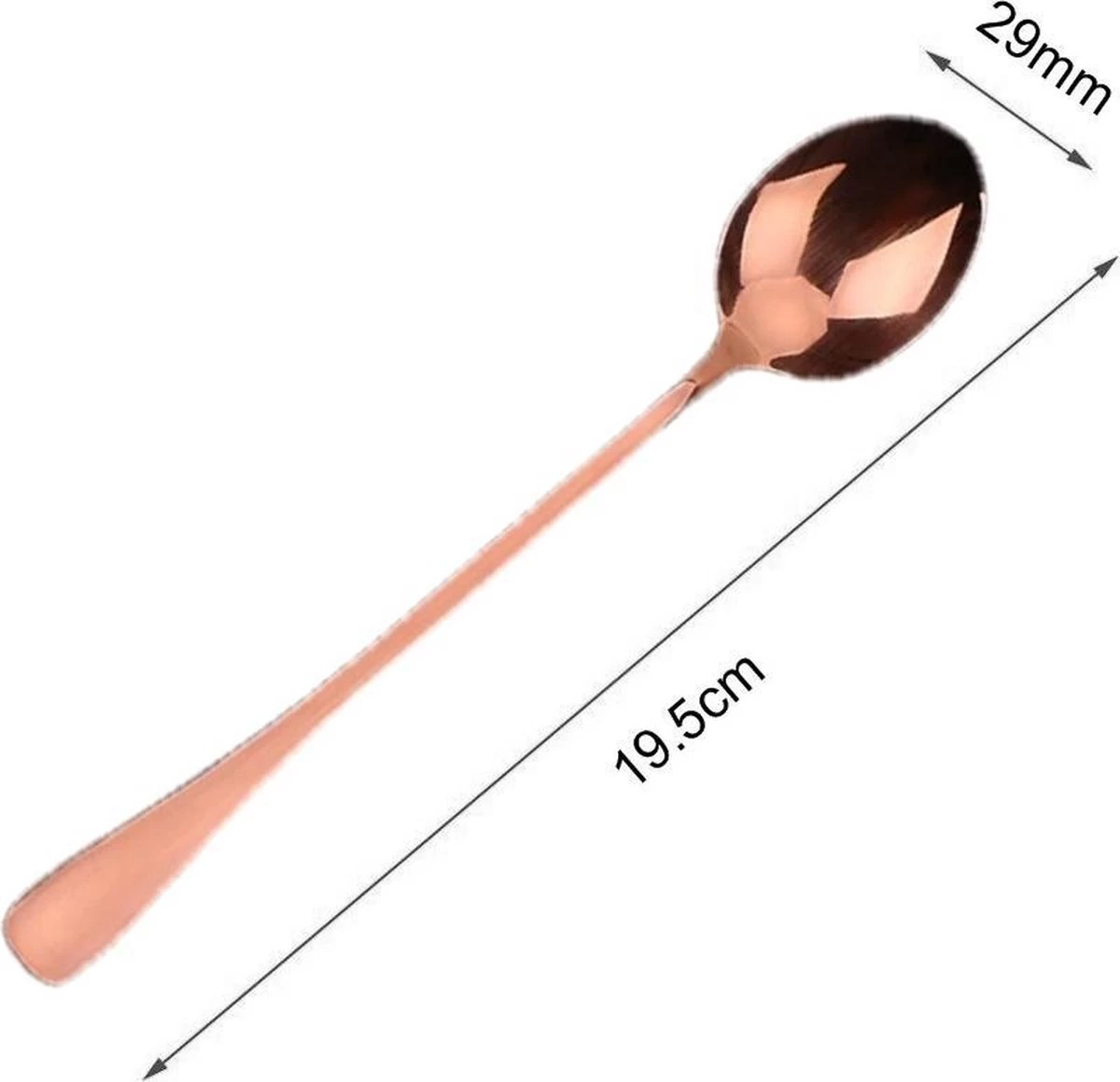 Un ensemble de 6 longues cuillères à latte macchiato en acier inoxydable or rose de Fako Bijoux® à un prix compétitif. Ces cuillères extra longues de 19,5 cm peuvent être utilisées comme cuillère à café longue, cuillère à dessert, cuillère à glace ou comme cuillère dans un cocktail savoureux. Avec cette cuillère, vous arrivez toujours au fond du verre et vous n’avez pas à craindre que la cuillère se perde sous la mousse. Livré dans un sac de rangement en velours.