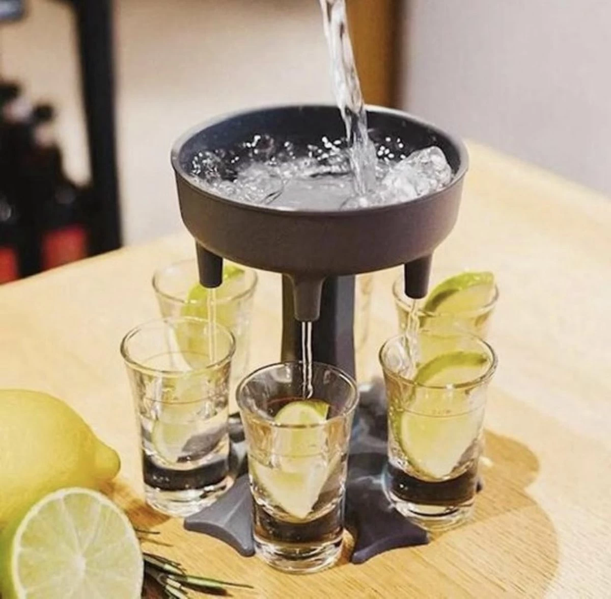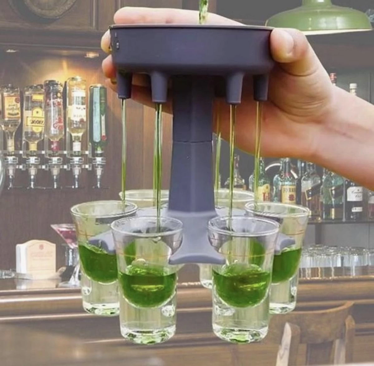 Le distributeur de tir est un élément indispensable pour une soirée inoubliable entre amis. Le distributeur de shot peut contenir 6 verres à shot, qui sont remplis simultanément et uniformément. De cette façon, moins de boisson est gaspillée. Vous obtenez également des bouchons de fuite avec ces épingles, vous pouvez également remplir moins de verres à liqueur. Ce qui vous donne la possibilité de filmer avec moins de 6 personnes en même temps.