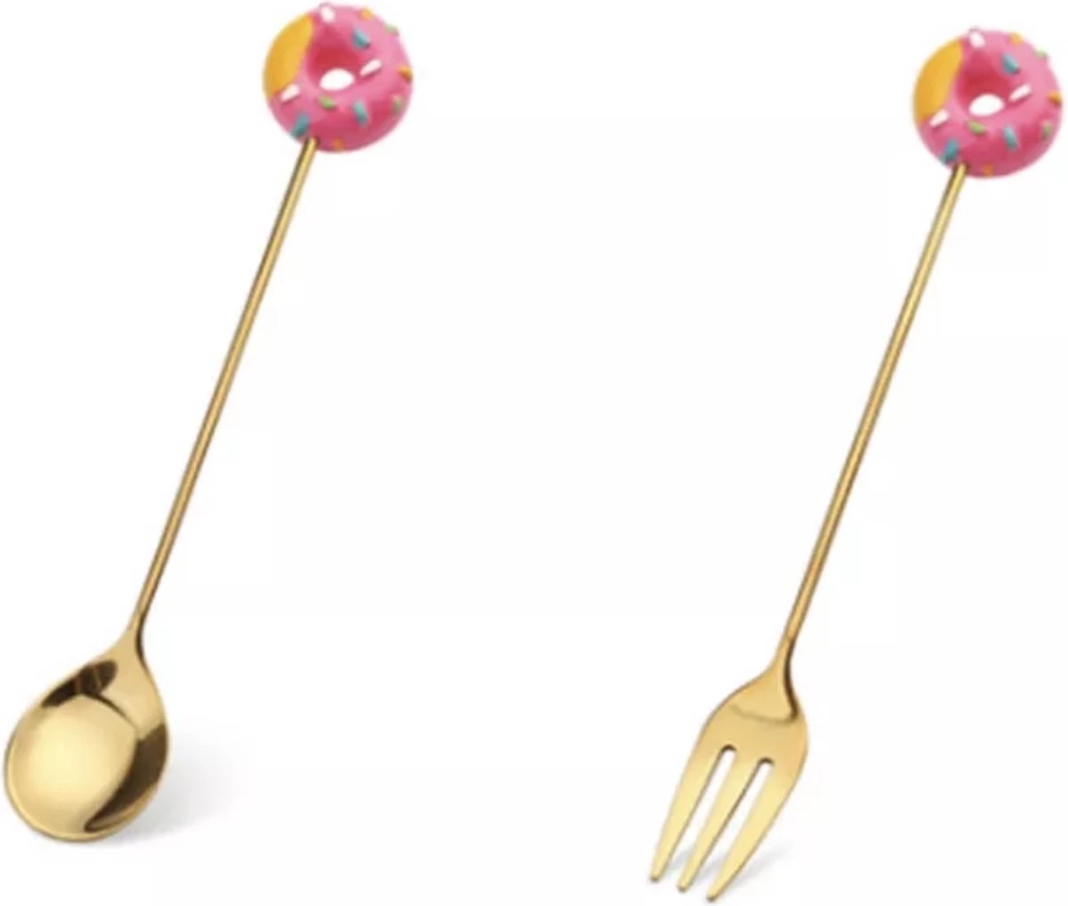 Qu’il est mignon ce dessert de couleur or ! L’ensemble contient une petite fourchette et une petite cuillère, avec une figure de beignet. L’ensemble est en acier inoxydable et ne se décolore donc jamais, même au lave-vaisselle. Comme c’est gentil!