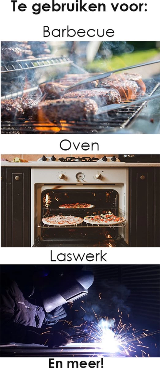 ✓ Utilisation pour : BBQ, grillades, pâtisserie, travail au four, cheminée, cuisinière, réparation de voiture, soudage et bien plus encore !