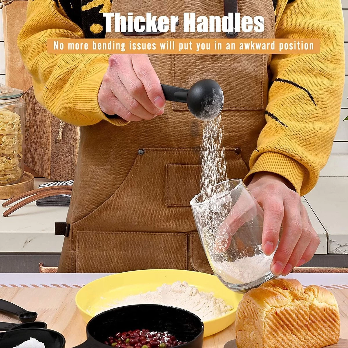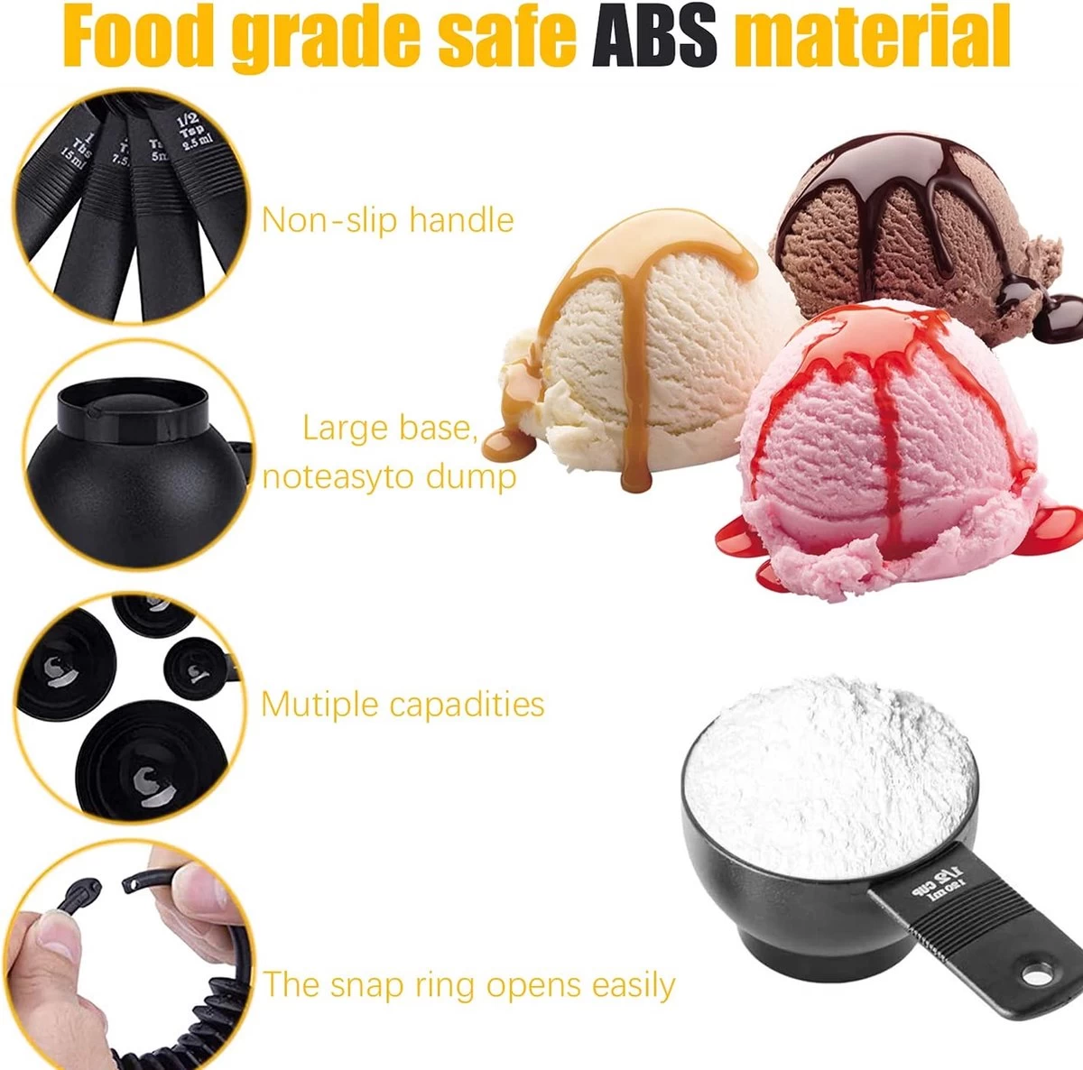 - Matériau de haute qualité : l’ensemble de cuillères à mesurer est fabriqué en plastique ABS de qualité alimentaire, sain, sûr, léger et durable. La conception monobloc rend la cuillère et la tasse à mesurer difficiles à casser. Le manche est épais, robuste et confortable à tenir.