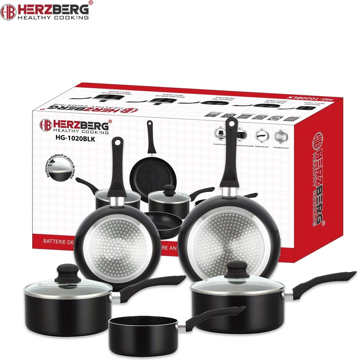 Commencez à cuisiner comme un vrai chef étoilé, commandez le Herzberg: Herzberg: Batterie de cuisine moderne 7 pièces avec revêtement en marbre maintenant !
