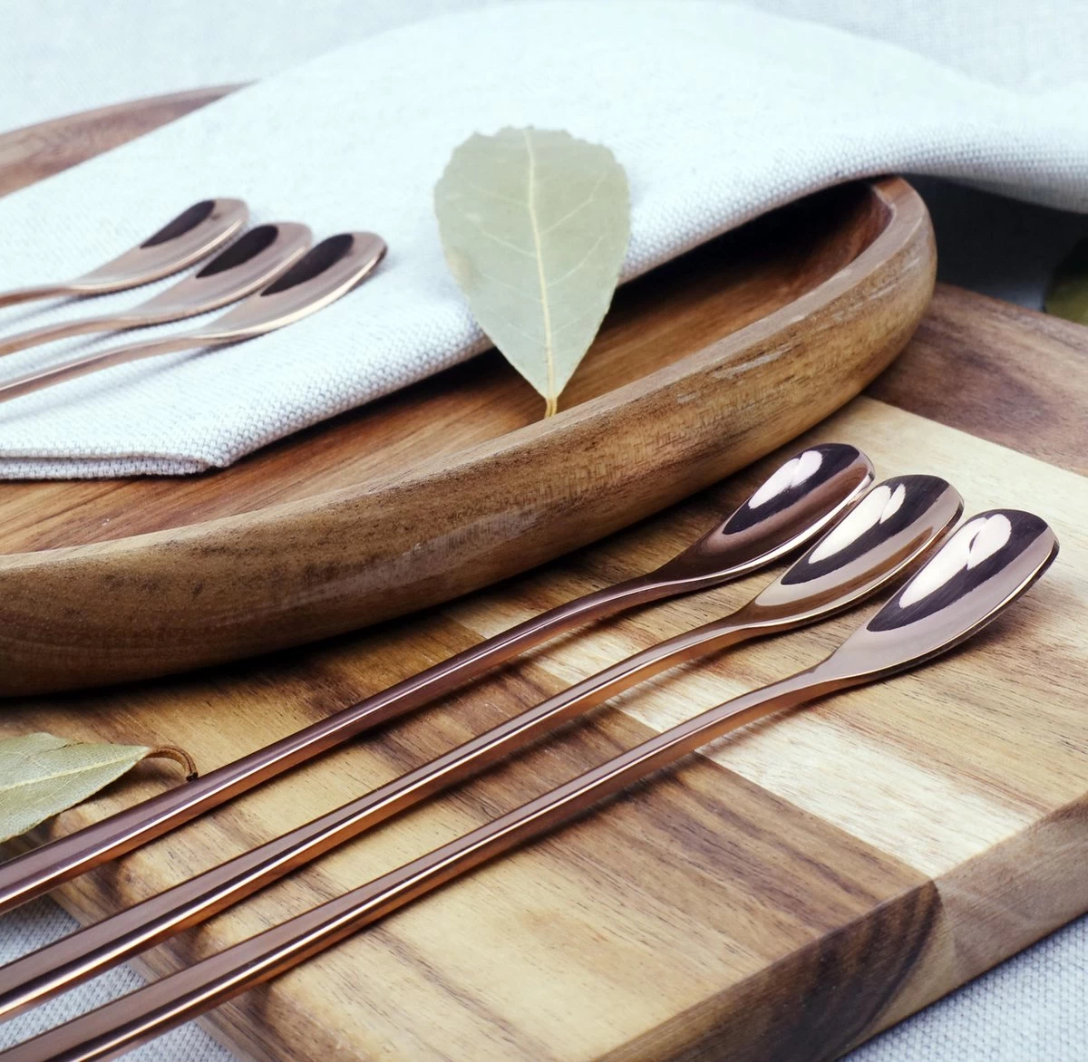 Nos cuillères à long drink peuvent aller directement au fond de votre délicieux latte macchiato, verre long drink, sundae et tasse à dessert, milk-shake, grandes tasses à café, etc.