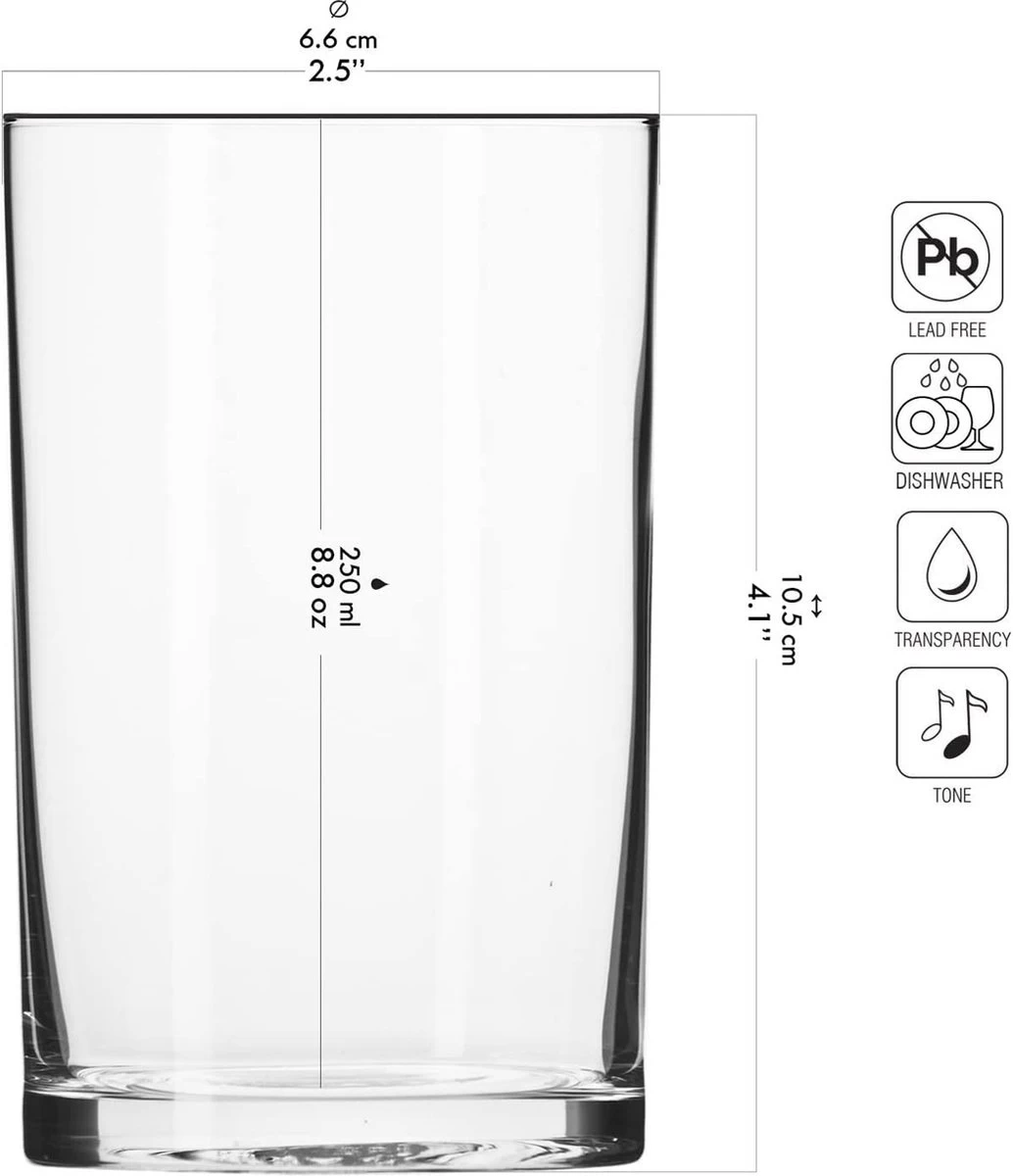 KROSNO Verres à Verres à Eau à Boire, Verres à Thé, Lot De 6, 250 Ml, Collection Essentielle, Parfaits Pour La Maison, Le Restaurant Et Les Fêtes, Vont Au Lave-vaisselle