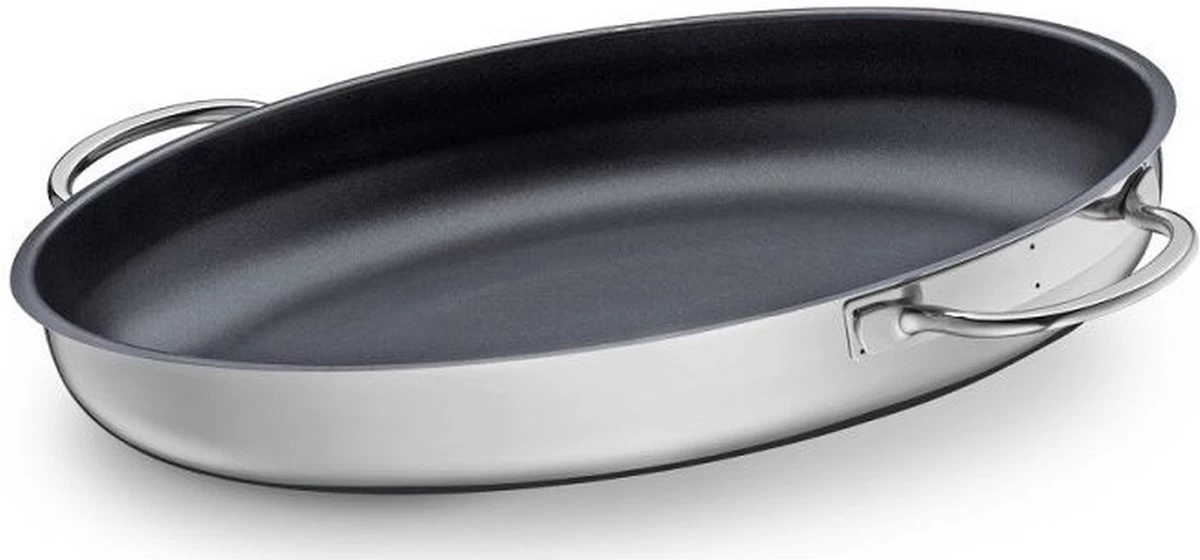 La poêle à poisson ovale en acier inoxydable Cook de Küchenprofi est dotée d’un revêtement antiadhésif de haute qualité. La poêle ovale mesure 39 cm de long et 27 cm de large et le fond multicouche extra solide assure une répartition uniforme de la chaleur. Utilisez la poêle à poisson pour faire frire du poisson sur toutes les sources de chaleur, y compris l’induction ou au four.