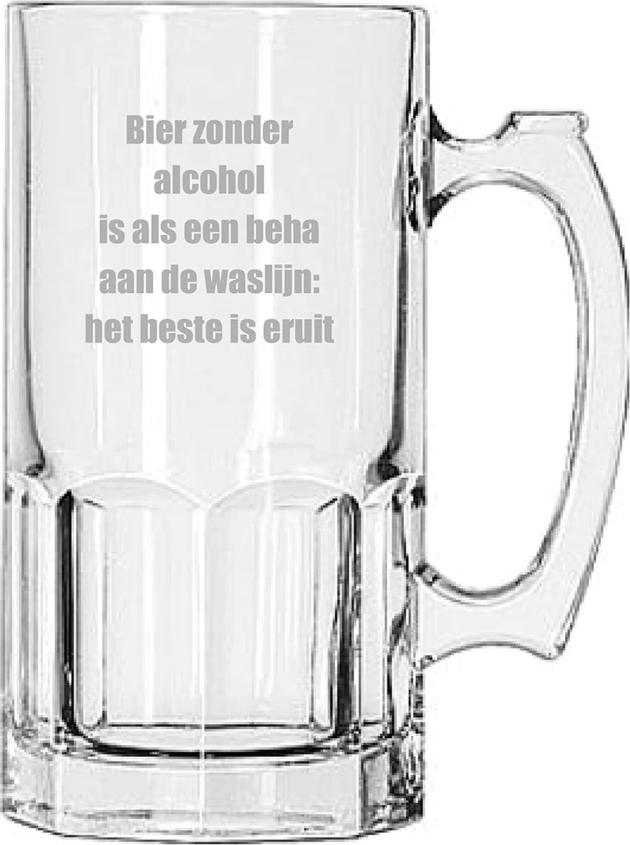 Chope à bière avec gravure La Bières sans alcool est comme un soutien-gorge sur la corde à linge : le meilleur est sorti. Avez-vous votre propre idée? veuillez nous contacter Attention ! Ce produit est gravé. La couleur de l’image peut différer de la gravure sur le produit.