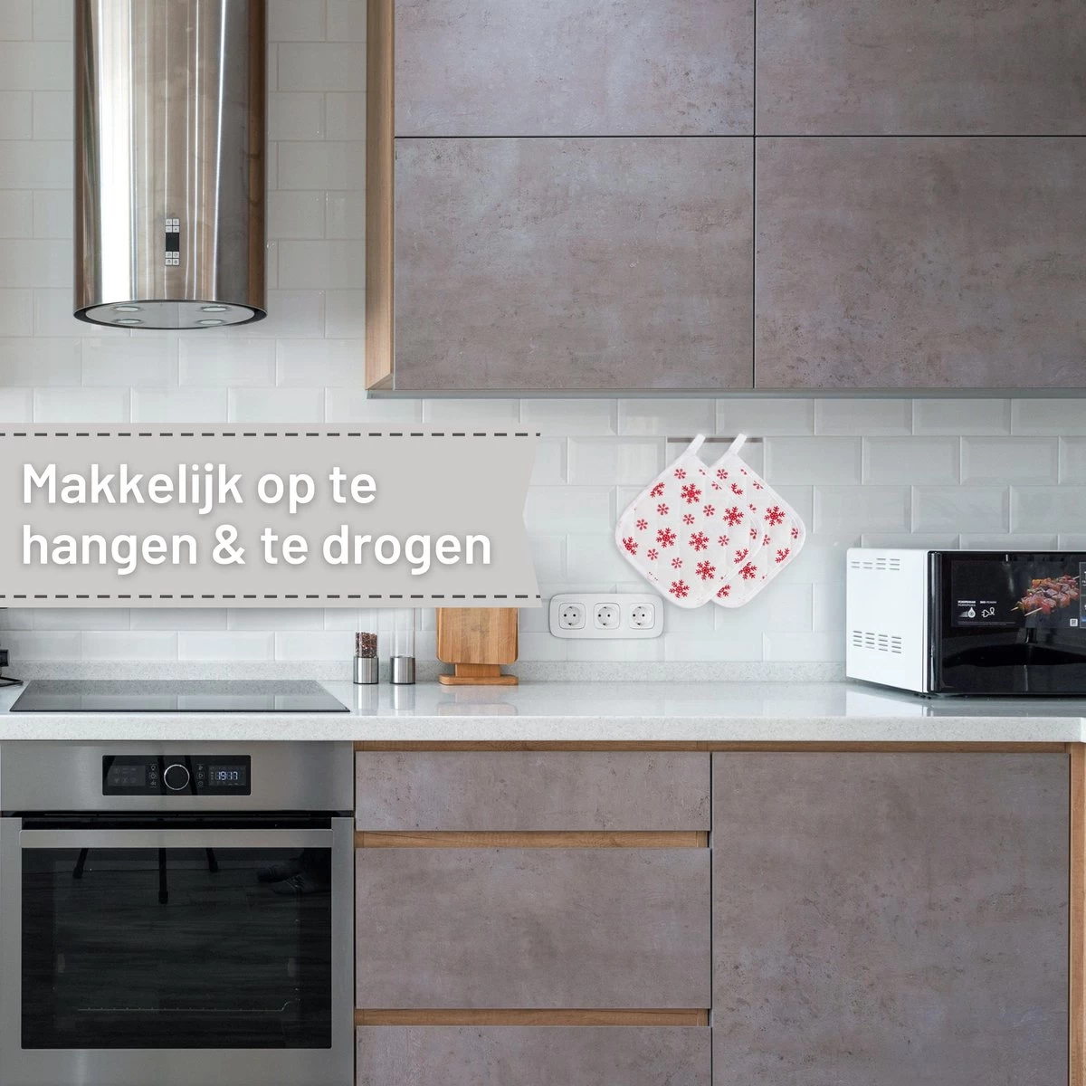 Ce produit est disponible en différentes couleurs. Les maniques sont situées sur un petit crochet, ce qui les rend agréables et propres à ranger dans la cuisine.