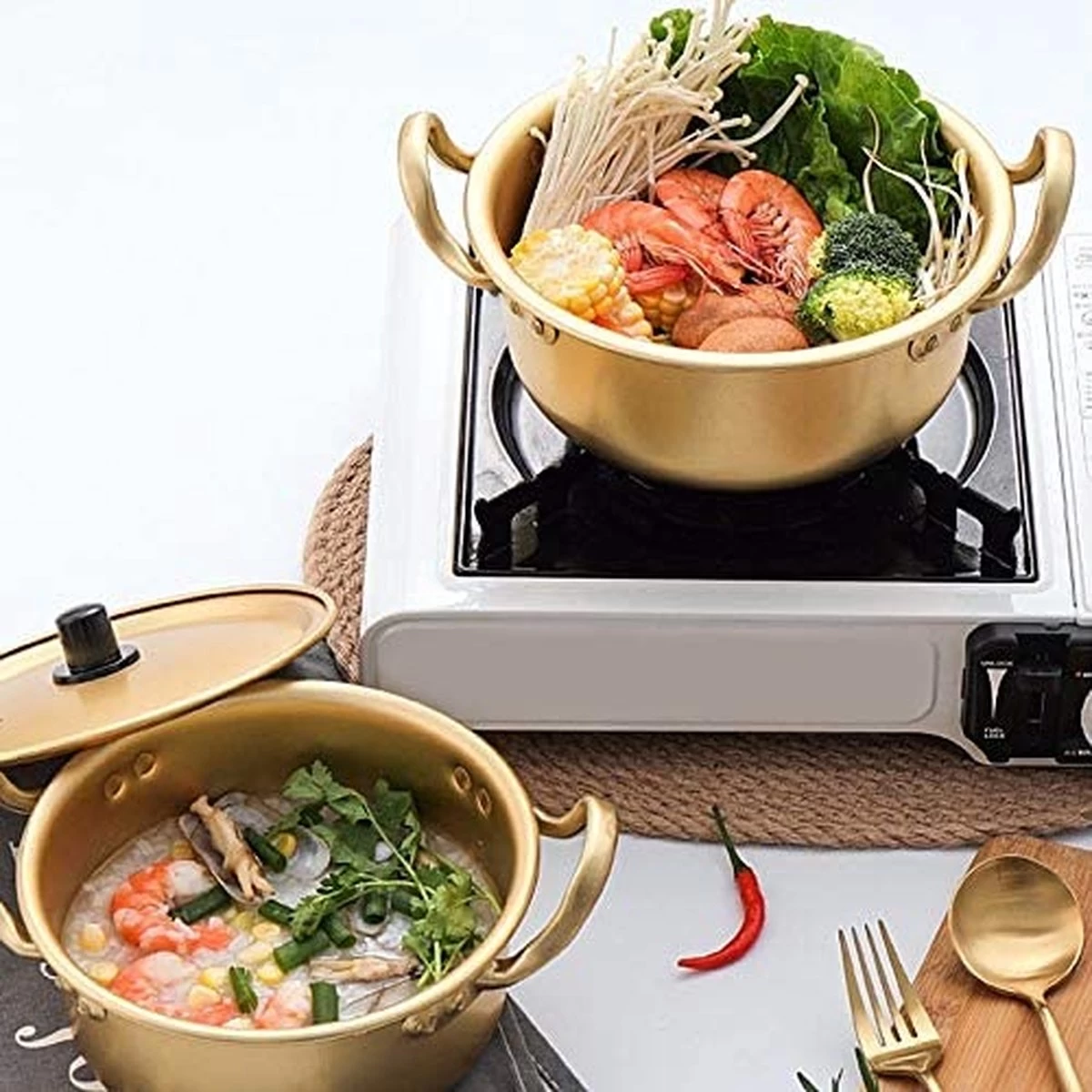 Marmite à Pâtes Coréenne, Marmite à Nouilles Fenêtres Coréenne à Double Poignée Marmite En Aluminium Jaune Coréen Marmite à Nouilles Instantanées (16 Cm)