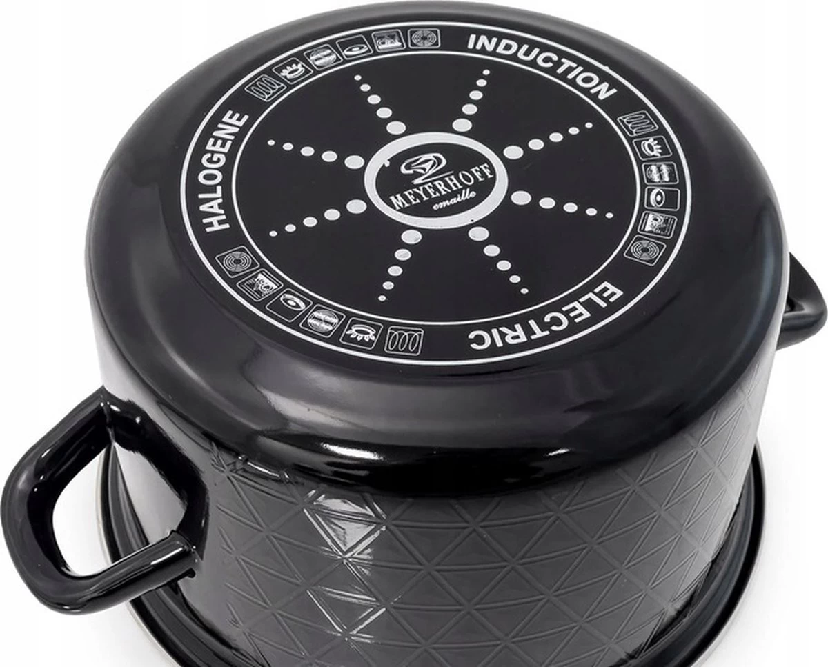 Les poêles Meyerhoff sont fabriquées en acier au carbone de la plus haute qualité recouvert d’une couche d’émail, qui agit comme un bouclier protecteur pour empêcher la pénétration de substances nocives dans les aliments. Un avantage supplémentaire des casseroles sont les couvercles transparents qui vous permettent de visualiser l’état de cuisson des plats. Les parois épaisses de la casserole gardent les aliments au chaud plus longtemps après la cuisson. Les poignées robustes en acier inoxydable ne chauffent pas, vous pouvez donc déplacer la casserole rapidement et confortablement.