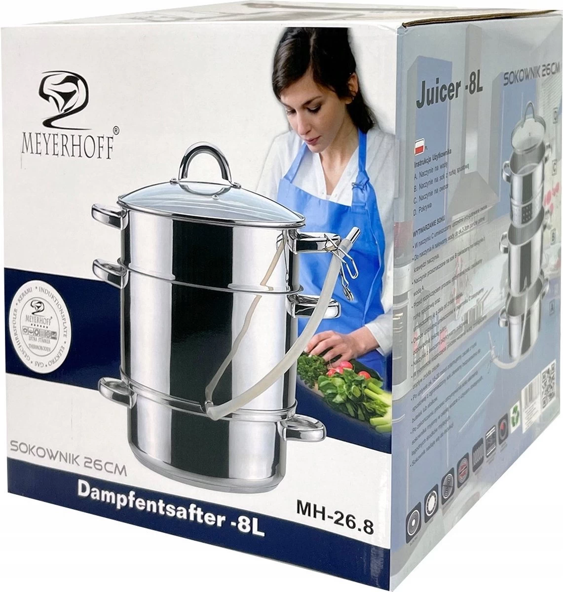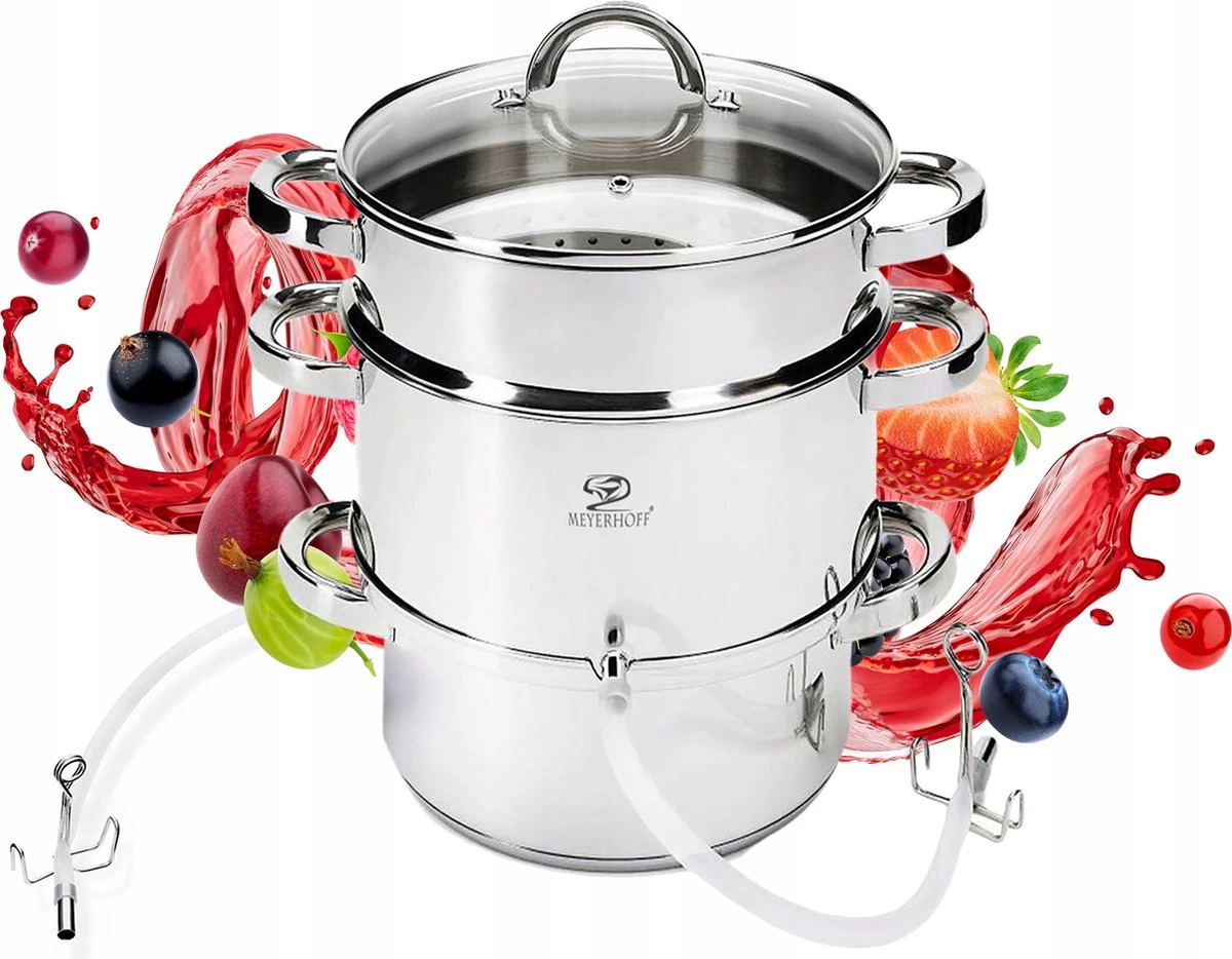 Avec le presse-agrumes, vous pouvez préparer les plus délicieux jus de fruits frais à partir de légumes et de fruits sur votre cuisinière. Comme le cuiseur vapeur n’est pas électrique, vous pouvez également le ranger facilement. Les 3 éléments se composent d’une casserole pour l’eau (la casserole du bas), une casserole pour recueillir le jus (la casserole du milieu) et une casserole avec tamis pour tous les fruits et légumes frais (la casserole du haut). Avec le tuyau et la pince inclus, vous pouvez rapidement extraire les jus les plus savoureux de votre casserole sans renverser ni renverser.