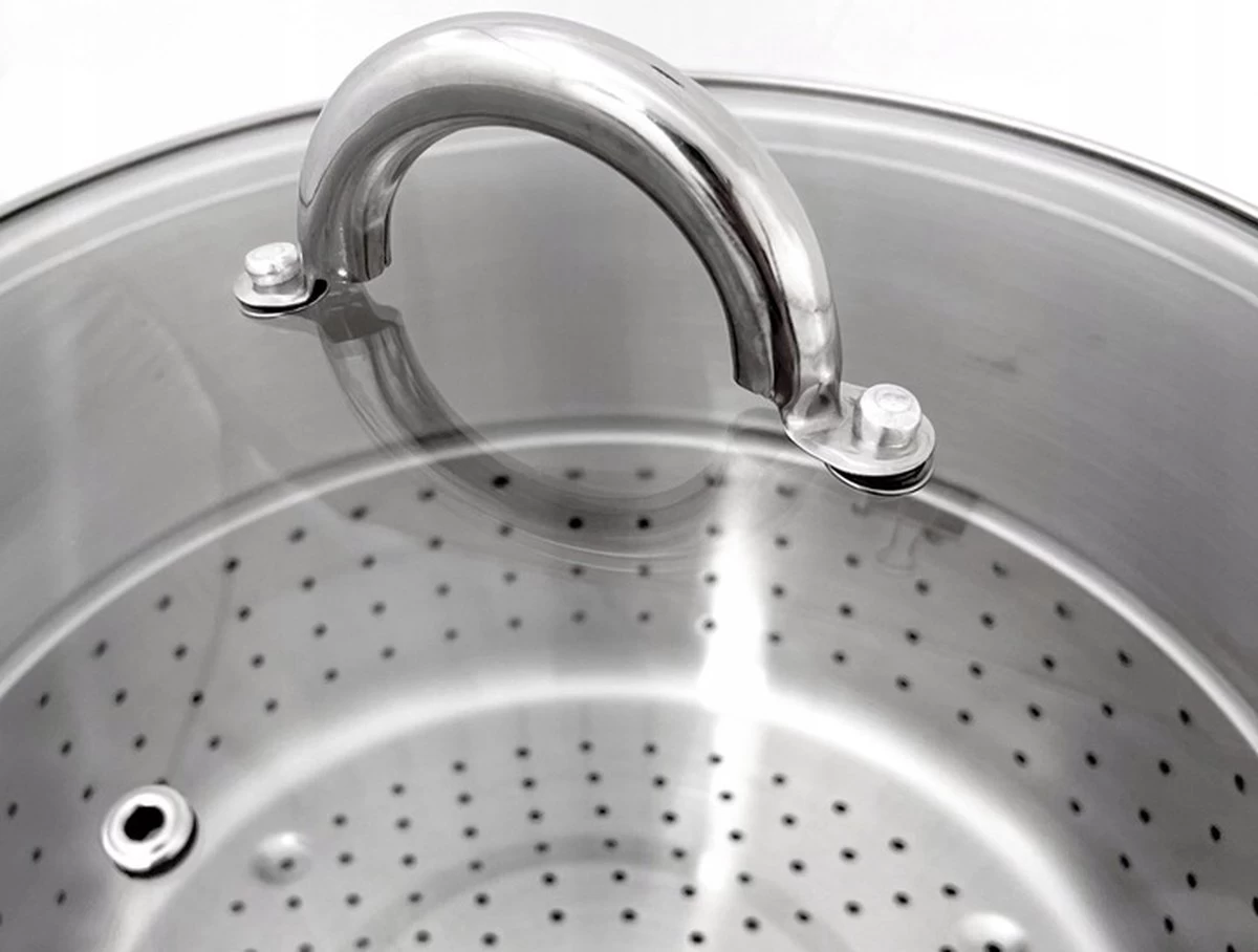 L’extracteur de jus peut également être utilisé comme cuiseur vapeur. Cela rend la casserole multifonctionnelle et vous n’avez besoin que d’une seule casserole à des fins différentes. Mettre de l’eau dans le plat du bas. Posez le cuiseur vapeur sur le dessus et utilisez le couvercle en verre pour fermer le tout. De cette façon, vous avez un vrai polyvalent à la maison !