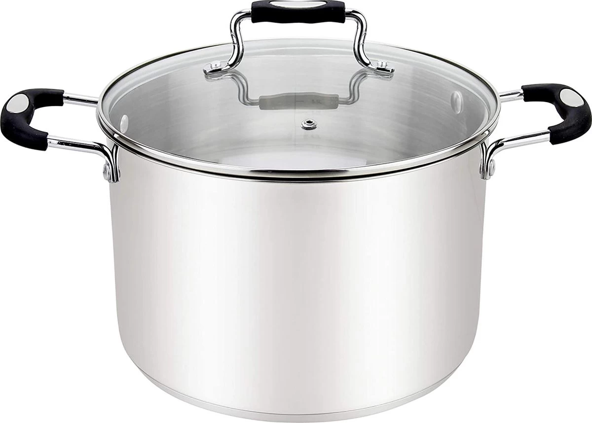 Maintien au toucher frais : les poignées rivetées durables de cette poêle profonde sont recouvertes de silicone, conçues pour rester au frais et fournir une prise en main sûre. Conçues pour votre sécurité, les poignées empêchent les brûlures et les glissades et offrent une expérience plus sûre tout autour. Cette casserole en acier polyvalente fonctionne sur tous les types de plaques de cuisson, donc que vous cuisiniez sur une cuisinière à gaz, que vous ayez une plaque à induction ou que vous utilisiez une plaque de cuisson électrique ou halogène, vous êtes toujours couvert de cette casserole. Le couvercle de cette marmite est en verre transparent, ce qui vous permet de vérifier facilement vos aliments pendant la cuisson. De plus, il dispose d’un trou de vapeur ventilé pour éviter la formation de buée, de broutage et de débordement.Passe au lave-vaisselle : pour un nettoyage super facile, jetez votre casserole dans le lave-vaisselle et laissez la machine faire son travail. Si vous préférez le laver à la main, rincez-le simplement à l’eau tiède savonneuse et séchez-le avec un chiffon doux.CONTENU 12 LITRES : Cette grande marmite en métal est parfaite pour cuire de grandes quantités de soupe et faire bouillir des cartons pleins de nouilles, ou pour préparer un double lot de piment. Idéal pour toutes vos grandes tâches culinaires.