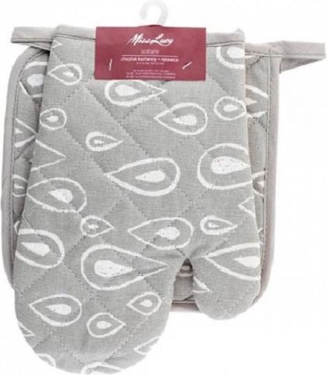 Miss Lucy »Soltare » gant de cuisine et tour de casserole set de 2 pièces 18 x 25 cm gris/saumon