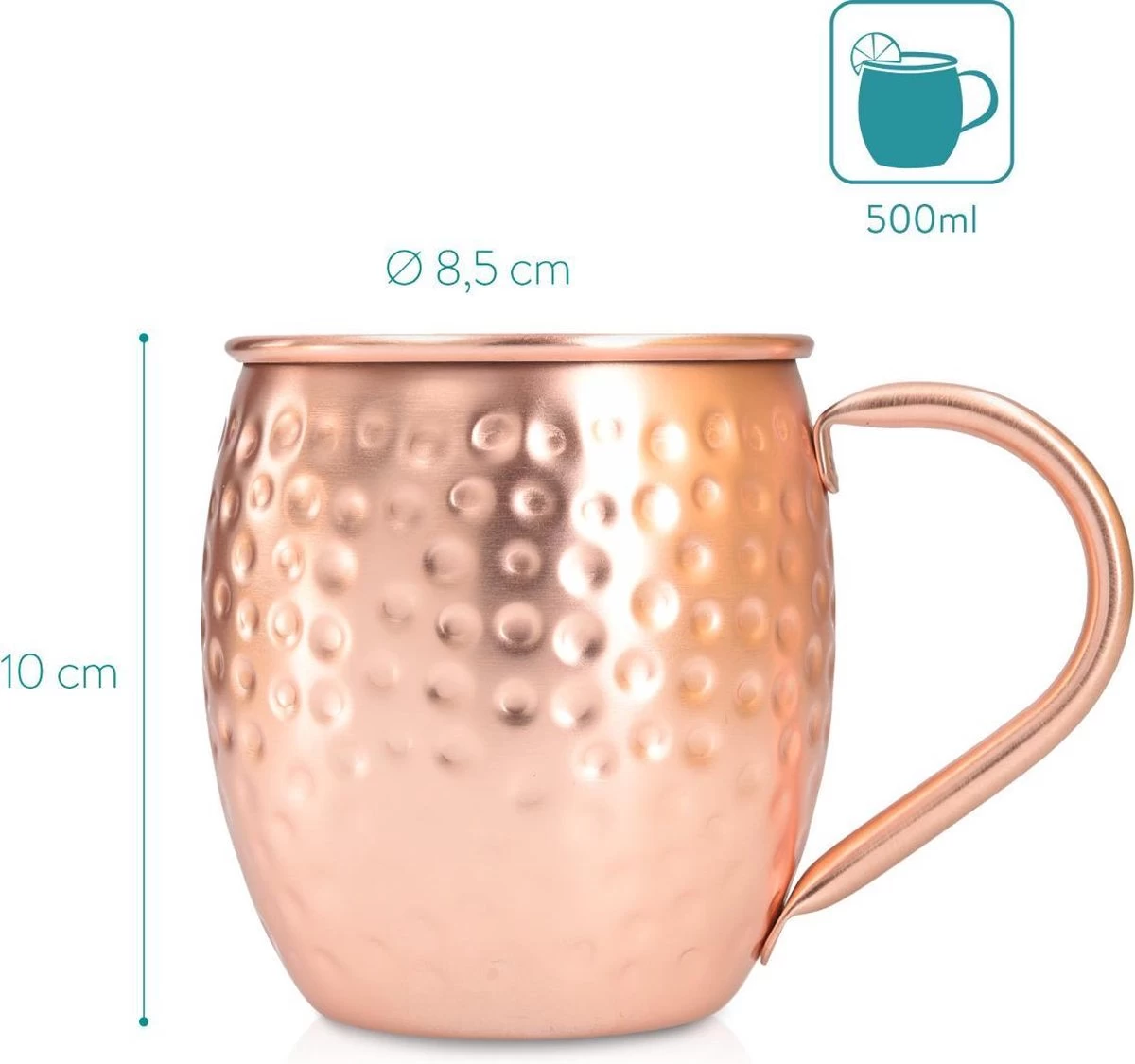 Design mat: les tasses à cocktail convainquent par leur surface en cuivre mat et martelé. L’intérieur des verres est en acier inoxydable non revêtu, une réaction du cuivre et de la liqueur n’est pas possible.