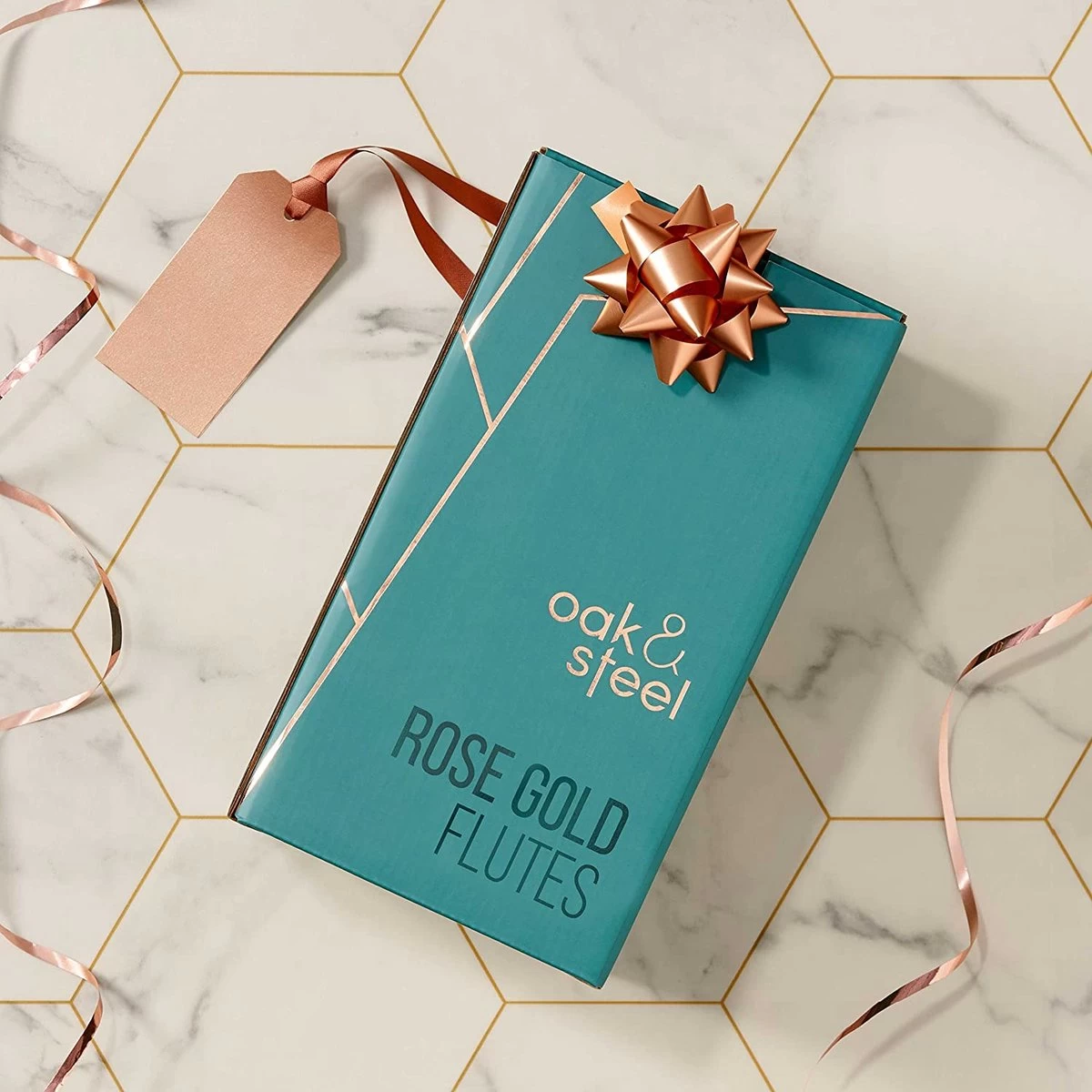 Oak & Steel 4 Verres à Flûtes à Champagne En Acier Inoxydable (285 Ml, 25 Cm), Or Rose/ Koper – Cadeau élégant Pour Les Amis Et La Famille