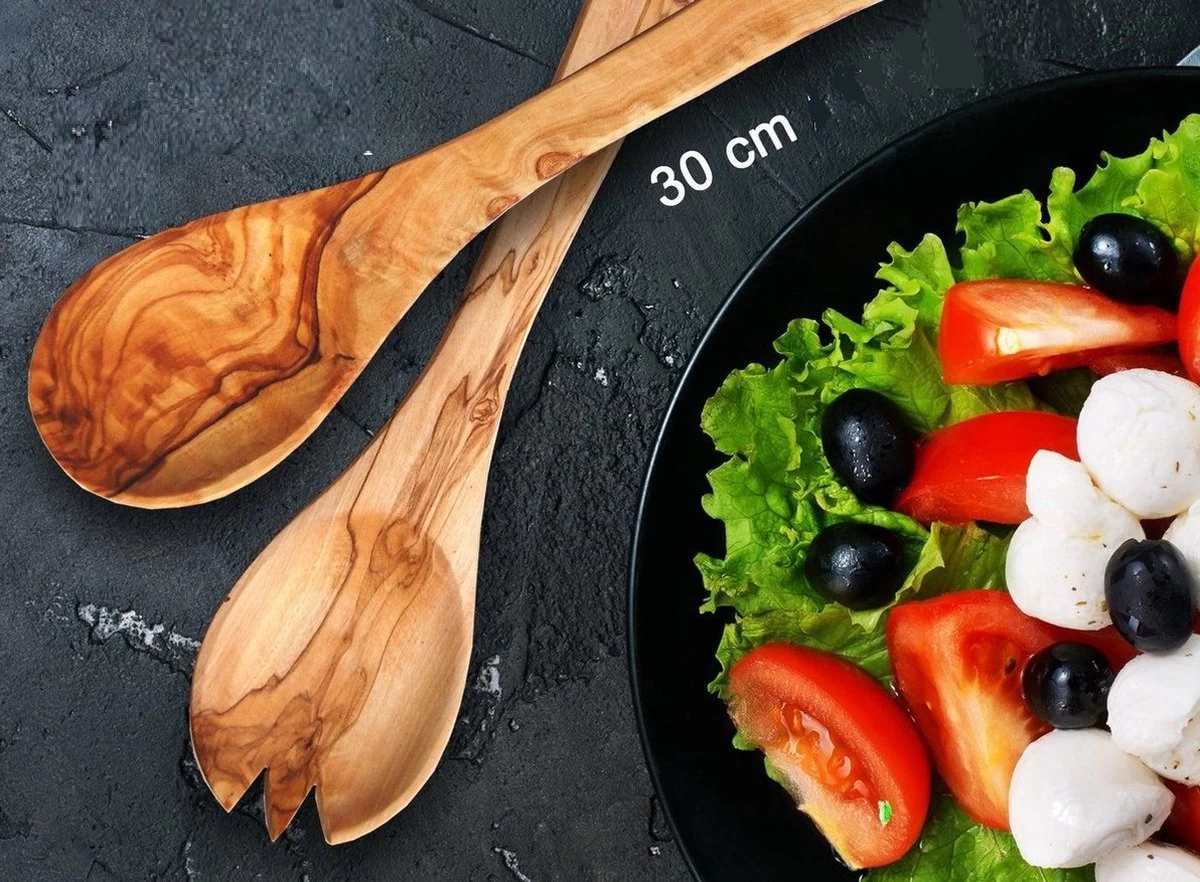Vous recherchez des couverts à salade durables, élégants et hygiéniques? Alors choisissez les couverts à salade en bois d’olivier OLIVIEU. Le meilleur bois d’olivier a été sélectionné pour vous fournir des couverts à salade de haute qualité. Le bois d’olivier est naturellement huileux, car le bois d’olivier contient de l’huile d’olive. En conséquence, le bois d’olivier repousse les résidus alimentaires, ce qui rend les couverts à laitue en bois d’olivier très hygiéniques à utiliser.