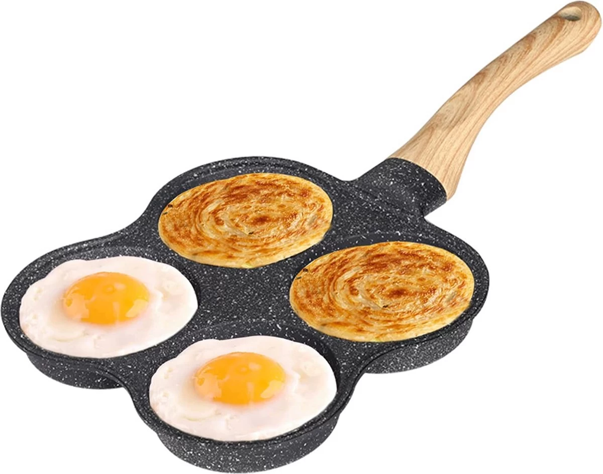 - USAGE MULTIPLE: La poêle à omelettes à crêpes à 4 trous vous permet de cuire parfaitement des œufs ronds, des curseurs de hamburger, des mini crêpes, des crêpes, des jeon (crêpes coréennes), des Banh Khot (mini crêpes de riz vietnamiennes) et plus encore.