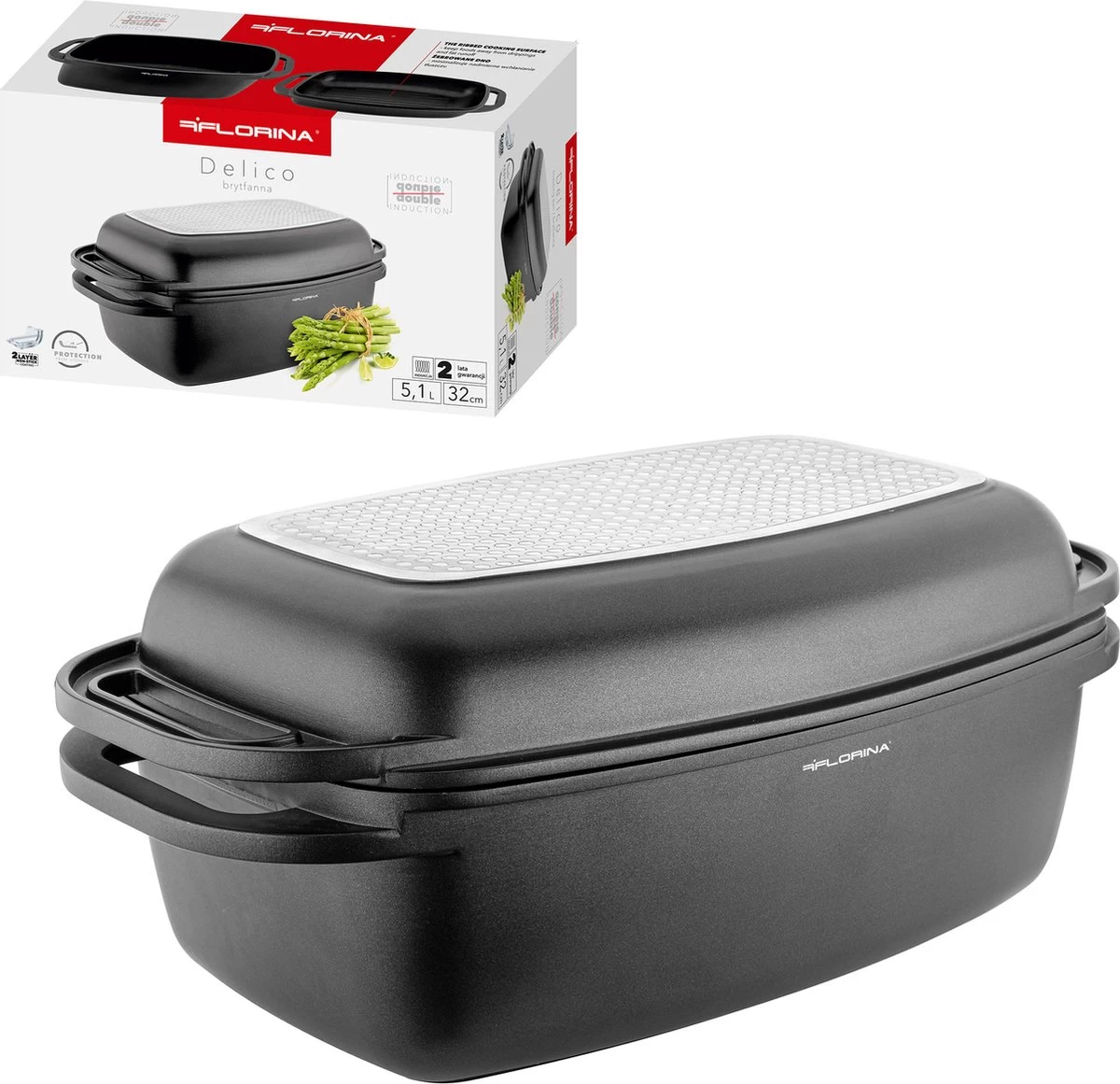 La cocotte Delico de Florina ne devrait pas manquer dans la cuisine de tout amateur de cuisine. Vous pouvez non seulement utiliser le plat pour la cuisson, mais aussi pour la cuisson et le rôtissage. La poêle et le couvercle sont équipés d’un fond à induction. Cela vous permet d’utiliser les deux éléments séparément.