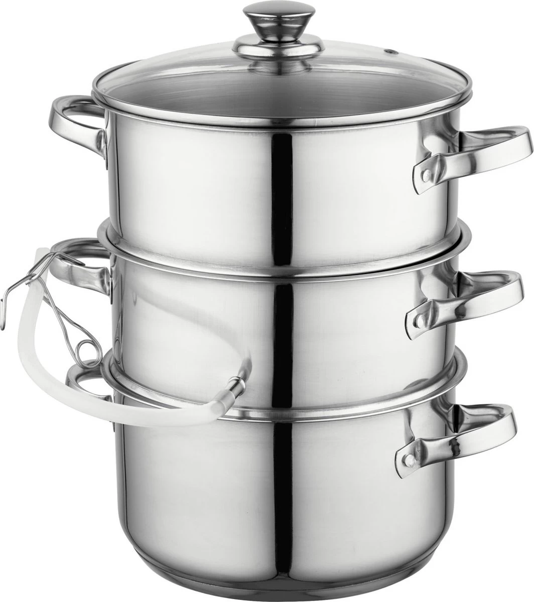 Vous cherchez également une nouvelle centrifugeuse mais vous ne voulez pas d’un gros électroménager dans votre cuisine ? Alors ce presse-agrumes est fait voor jou! Avec 3 casseroles superposées, y compris un couvercle, vous pouvez préparer les jus les plus délicieux sur votre cuisinière. La poêle convient à toutes les sources de chaleur, donc tout le monde peut l’utiliser. Le tuyau de vidange avec pince est idéal pour vidanger vos jus de fruits et de légumes fraîchement préparés dans des bouteilles ou des bocaux plus petits.