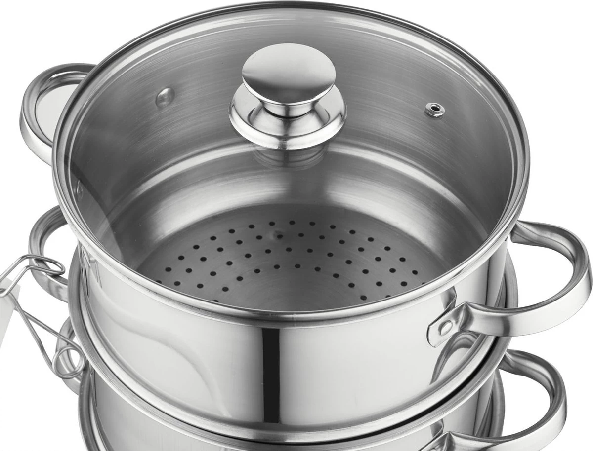 L’extracteur de jus peut également être utilisé comme cuiseur vapeur. Cela rend la casserole multifonctionnelle et vous n’avez besoin que d’une seule casserole à des fins différentes. Mettre de l’eau dans le plat du bas. Posez le cuiseur vapeur sur le dessus et utilisez le couvercle en verre pour fermer le tout. De cette façon, vous avez un vrai polyvalent à la maison !
