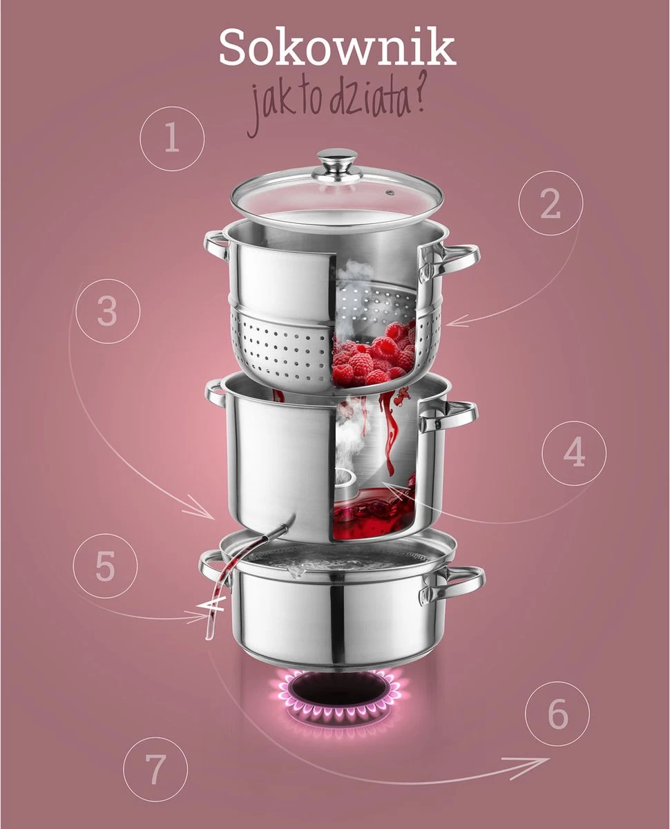 Avec le presse-agrumes, vous pouvez préparer les plus délicieux jus de fruits frais à partir de légumes et de fruits sur votre cuisinière. Comme le cuiseur vapeur n’est pas électrique, vous pouvez également le ranger facilement. Les 3 éléments se composent d’une casserole pour l’eau (la casserole du bas), une casserole pour recueillir le jus (la casserole du milieu) et une casserole avec tamis pour tous les fruits et légumes frais (la casserole du haut). Avec le tuyau et la pince inclus, vous pouvez rapidement extraire les jus les plus savoureux de votre casserole sans renverser ni renverser.
