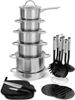 Kookkunst Holland Poêle à Induction 10 Pièces Avec Couvercles Et Poignées Froides En Silicone – Bleu