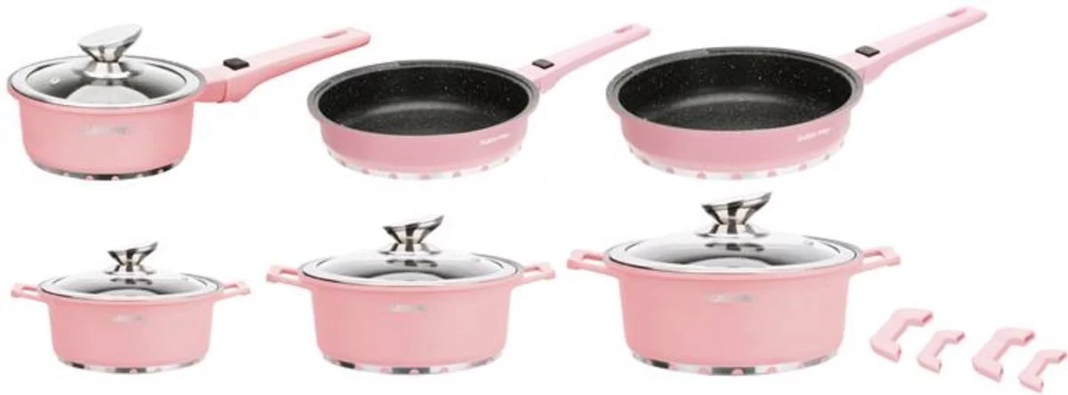 L’ensemble de casseroles durable se compose de 6 casseroles différentes, 4 couvercles en verre et 4 poignées (amovibles). Les poêles sont fabriquées avec une précision suisse et ont un revêtement antiadhésif de haute qualité avec un revêtement en marbre et un boîtier en aluminium durable. En raison du revêtement en marbre très dur, vous n’avez pas besoin d’utiliser de beurre ou d’huile pendant la cuisson, car les aliments ne collent pas à la poêle. De plus, ce revêtement est exempt de la substance toxique PFOA. Cela rend très facile la préparation de repas sains, savoureux et maigres.