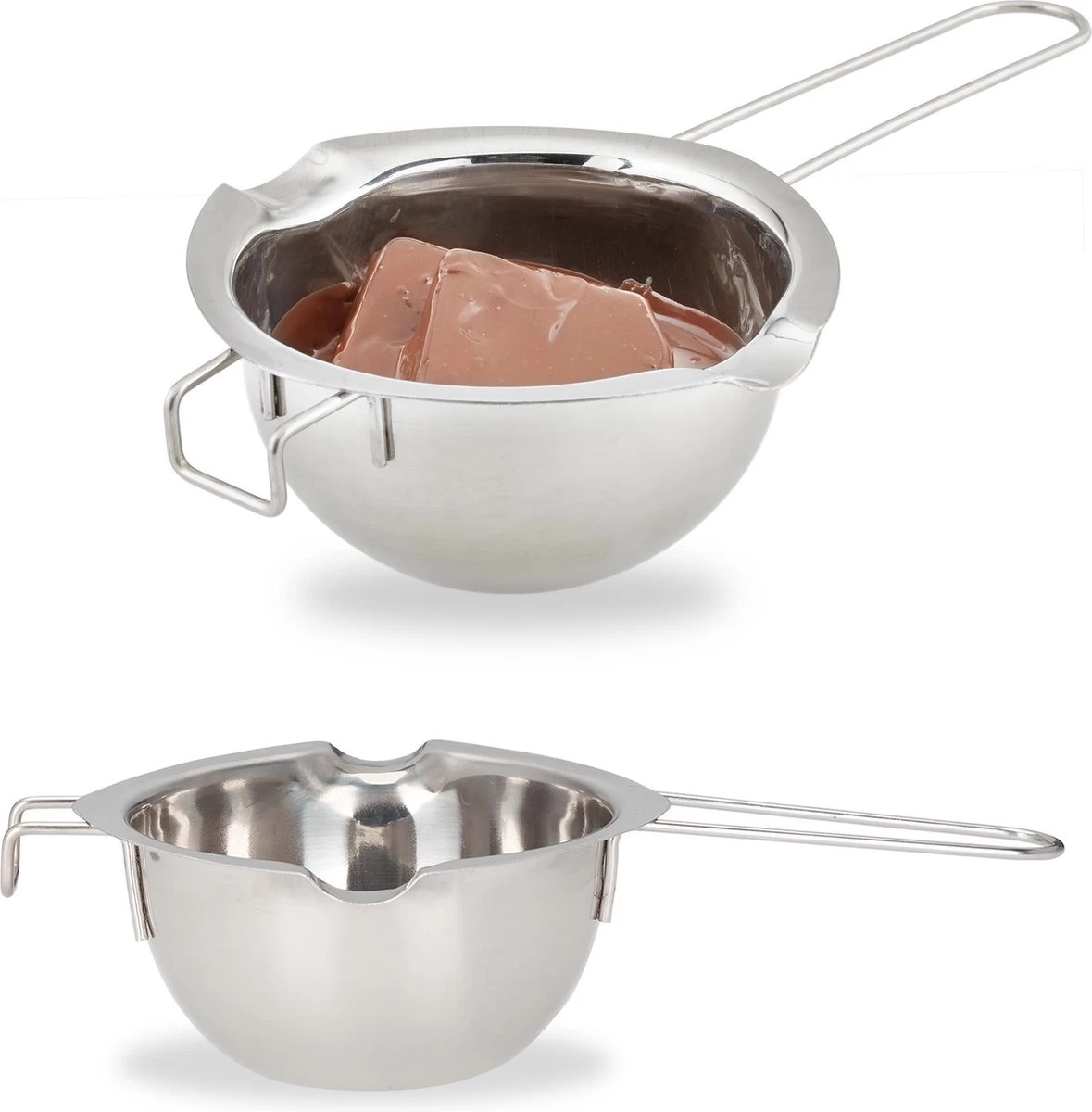 Relaxdays 2 X Melting Pot Inox – Poêle Au Bain Marie – Ø 11 Cm – Argent – Métal – Fondant