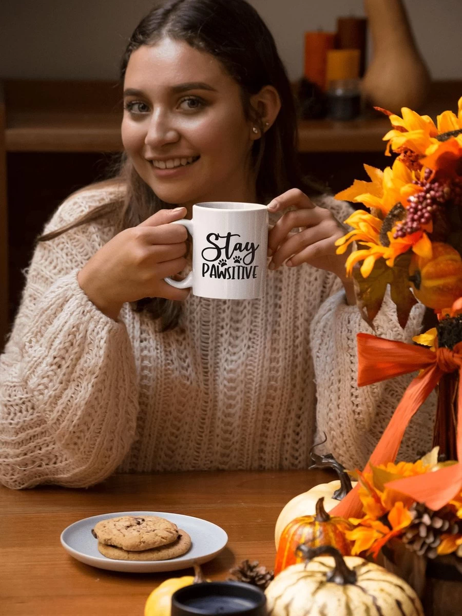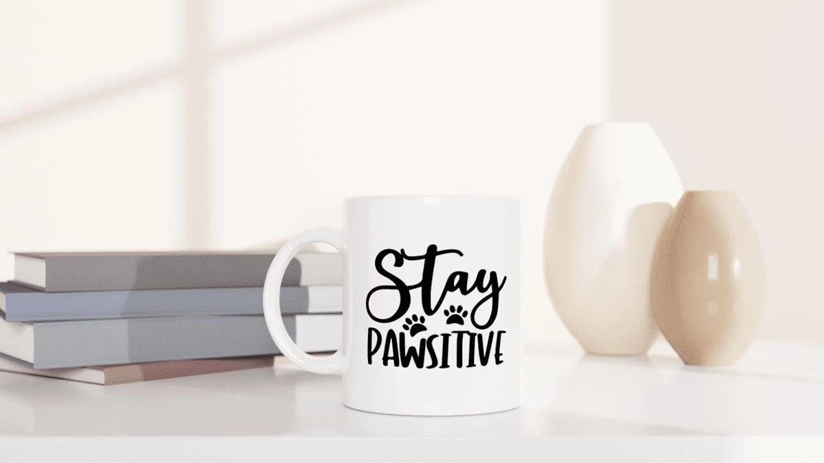 Restez Pawsitive Tasse En Céramique, Tasse à Café Mignonne Avec Patte, Tasse Cadeau Drôle Pour Amoureux Des Chiens, Cadeau Uniek Pour Les Propriétaires De Chiens, D015-083W, 11 Oz,