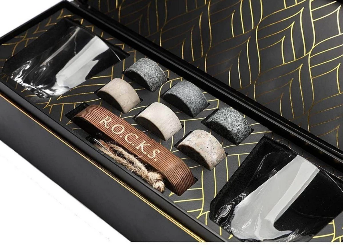 Inspirée des Écossais, l’expérience « On The Rocks » remonte aux années 1940. Les pierres de rivière froides ont été nettoyées et utilisées pour garder le whisky au frais pendant le transport. Les Écossais n’aimaient pas le whisky dilué dans l’eau, ils utilisaient donc des pierres naturelles pour garder le whisky au frais. C’est un cadeau parfait pour tout amateur de whisky. Une belle nouvelle façon de boire votre whisky de manière raffinée.