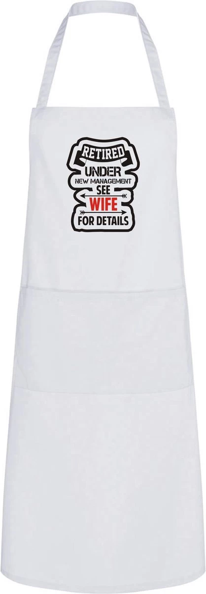 Retraité sous une nouvelle direction … voir sa femme pour plus de détails | Taille unique | Blanc | Tablier de cuisine
