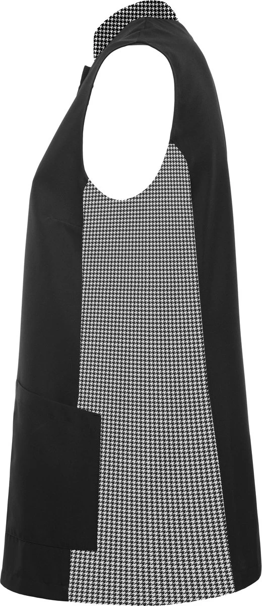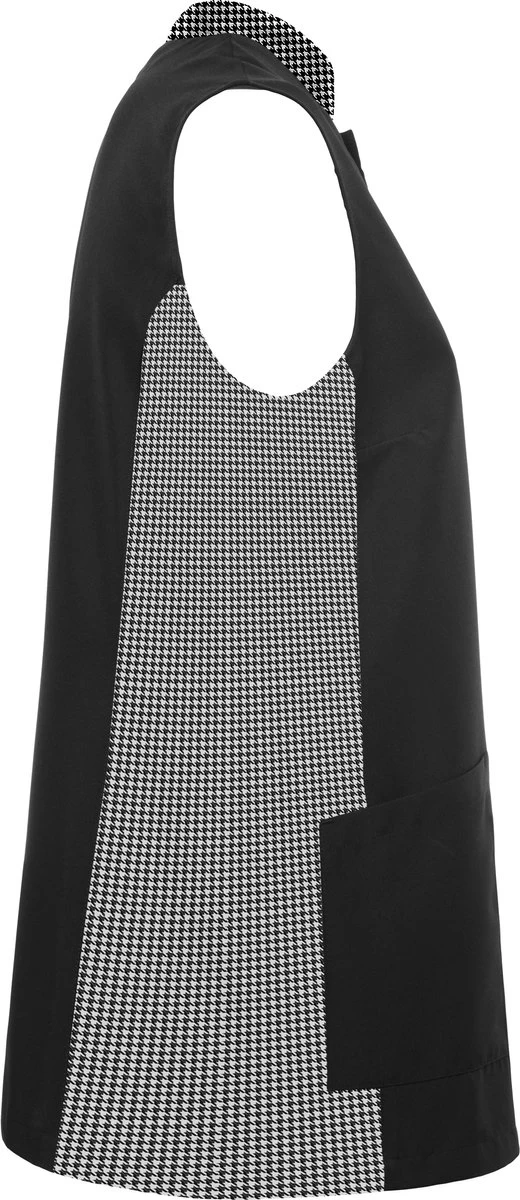 Roly Tablier Femme Zwart Avec Détails Losanges Avec Boutons-pression Dissimulés, Poches Et Col Mao, Modèle Aldany Taille L