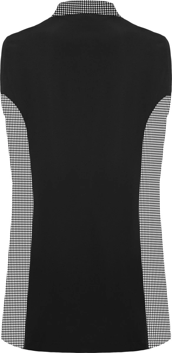 Tablier Mouwloos . Fermeture centrale avec boutons-pression dissimulés. Col mao, coutures côtés et suède sur la poitrine. Deux poches plaquées sur le devant. 100% polyester