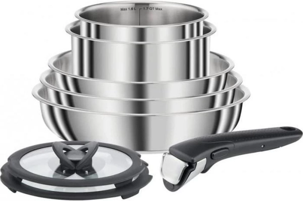 SEB L953S804 COMPACT Set 8 Pièces INOX Casseroles Et Casseroles Empilables Tous Feux Dont Induction