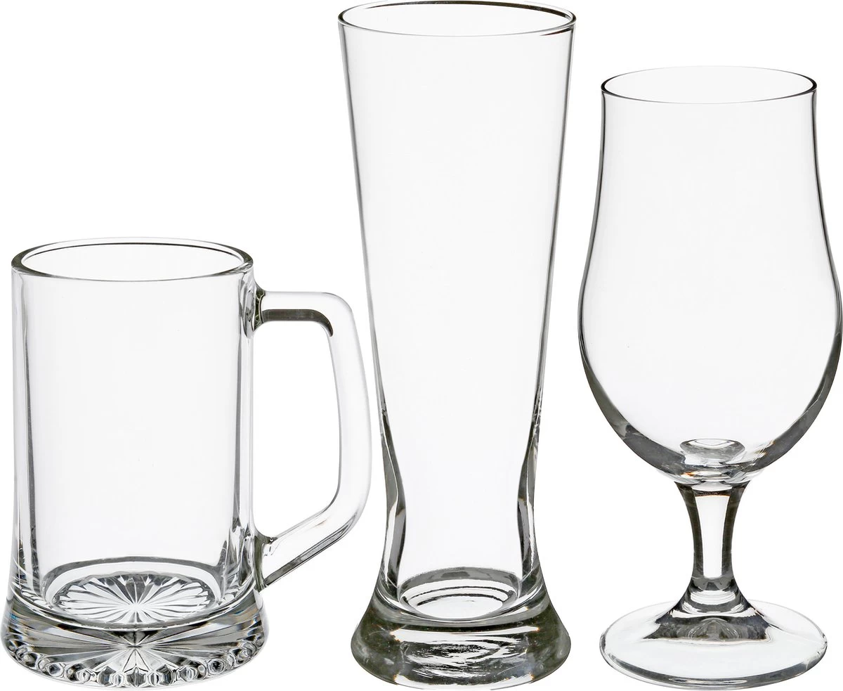 Ensemble de verres à bière Secret de Gourmet . Set composé de 4 verres à bière, 4 chopes à bière et 4 verres à bière sur pied. Cadeau Perfect pour les amateurs de bière. Idéal aussi pour l’Oktoberfest, une soirée avec les gars ou un après-midi sur la terrasse. Taille du verre à pilsner : environ 7 x 21 cm. Contenu : environ 370 ml. Taille de la chope à bière : environ 9 x 12 cm. Contenu: environ 320 ml. Taille verre à bière sur pied : environ 9 x 18 cm. Contenu : environ 370 ml. Matière : verre. L’ensemble va au lave-vaisselle.