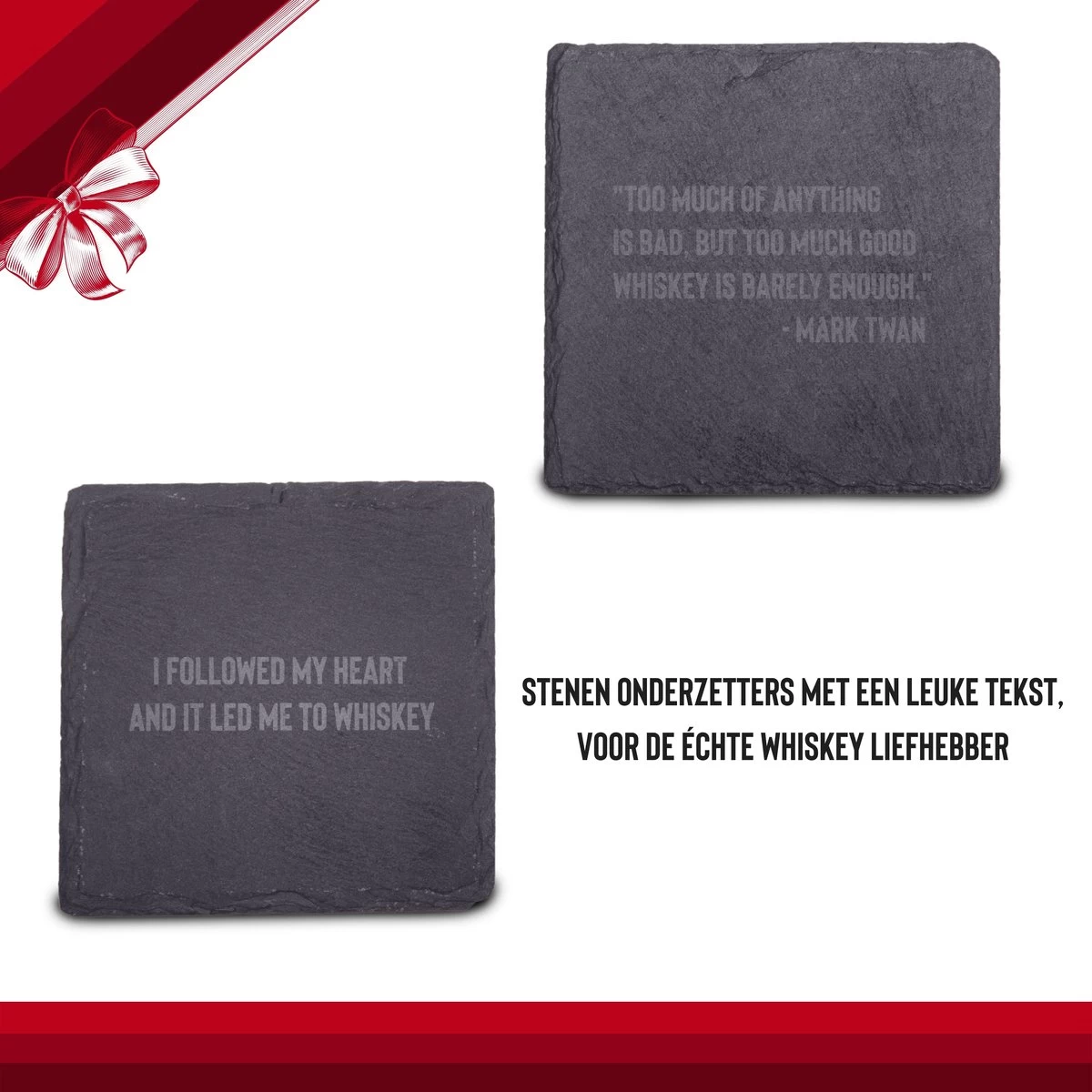 Préparez le parfait « Whiskey on the rocks » ; tout comme en Écosse, ils refroidissaient leur whisky avec des pierres de rivière. Les « roches » de pierre naturelle refroidissent votre whisky sans qu’il devienne aqueux, comme cela arrive souvent avec les glaçons. Les verres élégants et les sous-verres en granit assortis donnent une expérience supplémentaire à votre moment de boisson.