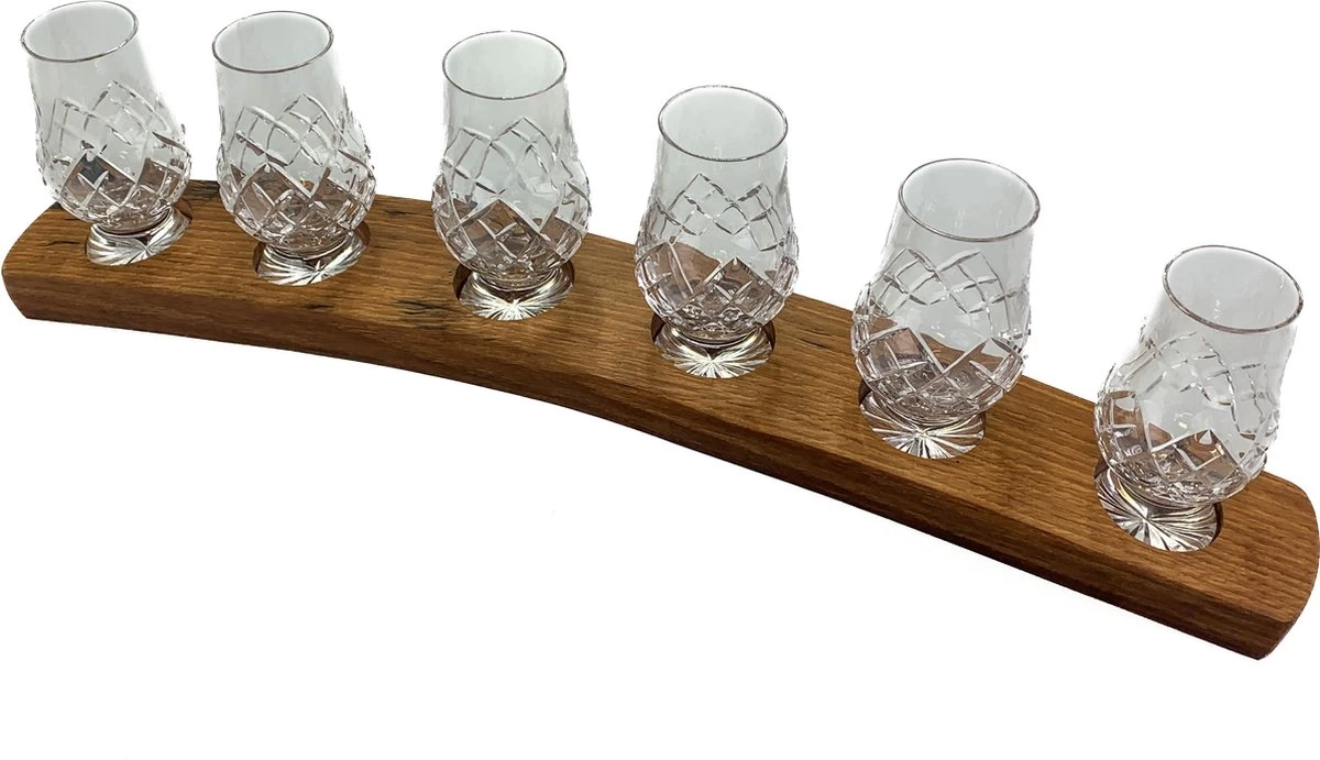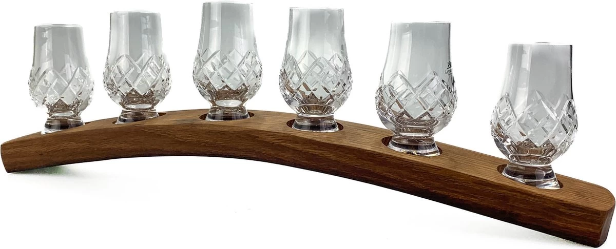 Support Vintage Et 6 Verres à Whisky Glencairn Série CUT – Support Fabriqué En Ecosse à Partir D’anciens Fûts De Whisky