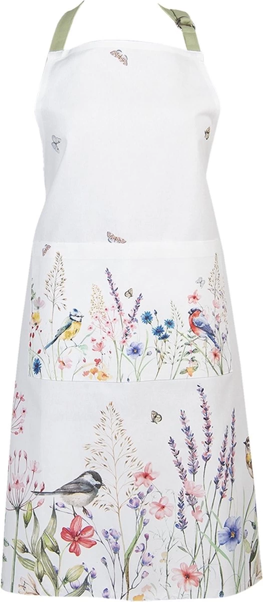 Ce joyeux tablier de cuisine de la marque Clayre & Eef au motif d’oiseaux et de fleurs, avec un compartiment de rangement est pratique, beau et pratique à la fois. L’imprimé multicolore de style campagnard au look romantique donne à votre cuisine une atmosphère cosy et chaleureuse. Le tablier de cuisine est composé à 100% de coton et vous pouvez facilement ajuster et attacher le tablier à la bonne longueur à l’aide des sangles dans le cou. La taille du tablier de cuisine est de 70*85 cm, et il a un bon ajustement. A fière allure dans votre cuisine, s’intègre dans n’importe quel intérieur et vous protège lors de la cuisson et de la cuisson des plats. Notre tablier de cuisine peut être lavé à la machine à laver. Ce tablier de cuisine fait partie de la série de textiles de cuisine So Floral. Dans cette belle série, vous trouverez également des articles assortis tels que des nappes, des nappes, des chemins de table, des oreillers, des sets de table, des serviettes, des tabliers, mais aussi des torchons et des torchons, des maniques, des maniques et des corbeilles à pain. Avec les textiles de cuisine Clayre & Eef , votre cuisine sera encore plus confortable!