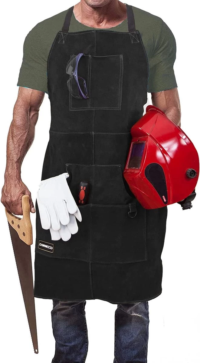 - LE MEILLEUR AMI DE TOUS LES SOUDEURS OU HIERRY SUGGÉRÉ – Le tablier DIMWELD est fait pour durer. Il est fait de cuir de vachette de 1,4 mm d’épaisseur et cousu avec du fil Kevlar résistant à la chaleur, vous pouvez donc passer de nombreuses heures avec sans crainte de casse ou d’usure. Il a également un système d’entrejambe à l’arrière qui l’empêche de pendre de la section de la poitrine.