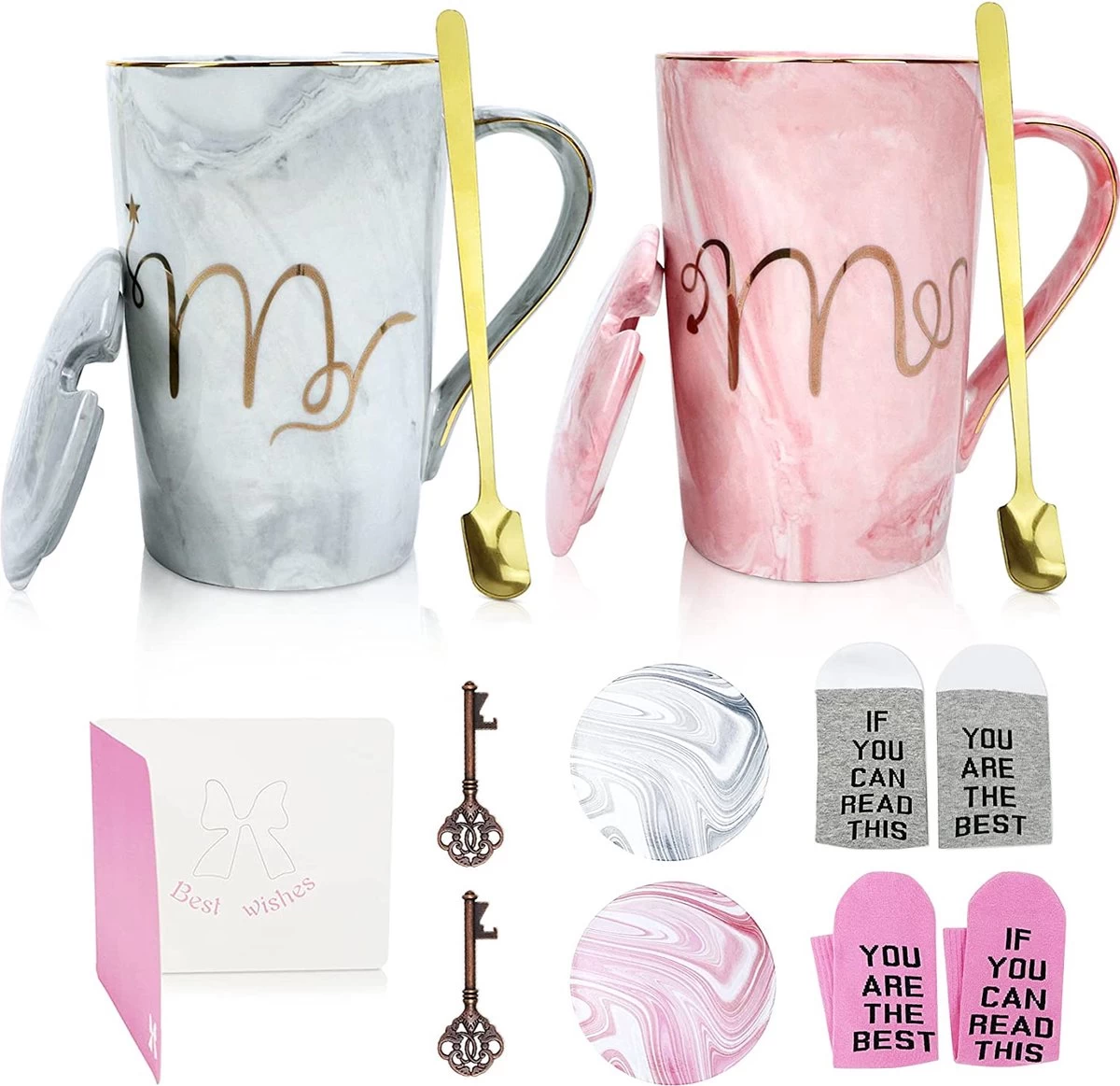 Tasses à Café Mr Et Mrs, Tasse En Céramique Marbrée 420 Ml, Coffret Cadeau Tasse à Café, Cadeau De Mariage Pour Couple, Mariée Et Marié, Mariage, Fiançailles, Anniversaire, Saint Valentin