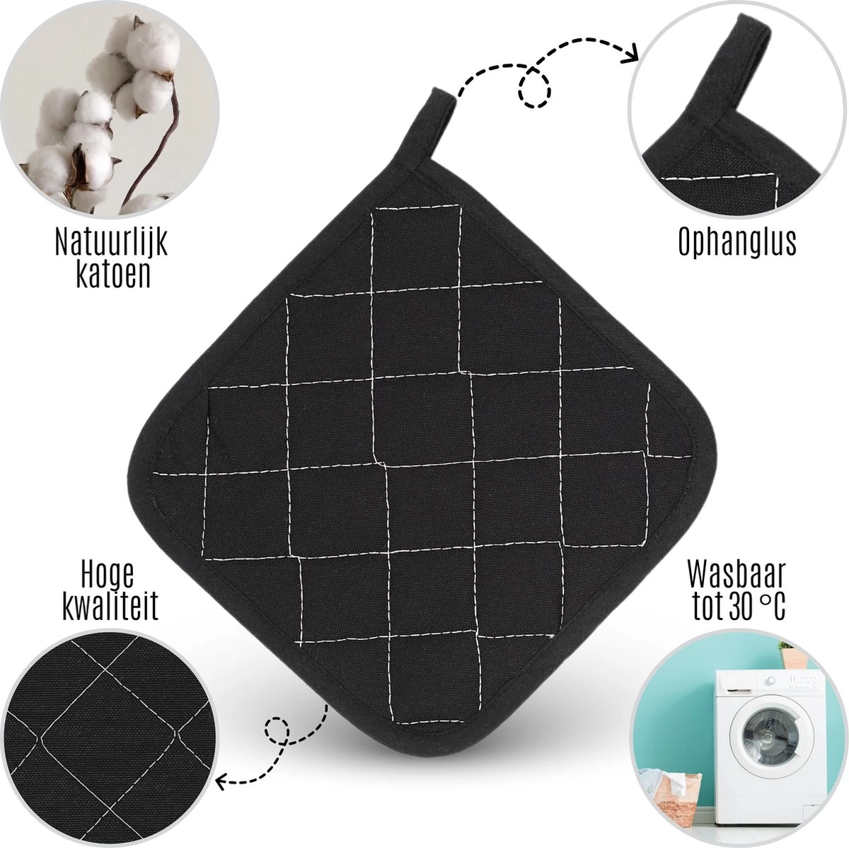 Ce produit est disponible en différentes couleurs. Les maniques sont situées sur un petit crochet, ce qui les rend agréables et propres à ranger dans la cuisine.