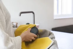 TweeDoek Jaune Moutarde Et Gris Chaud, Serviette Design Et Torchon En Un!