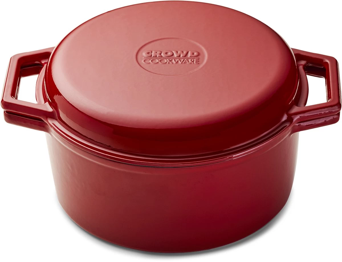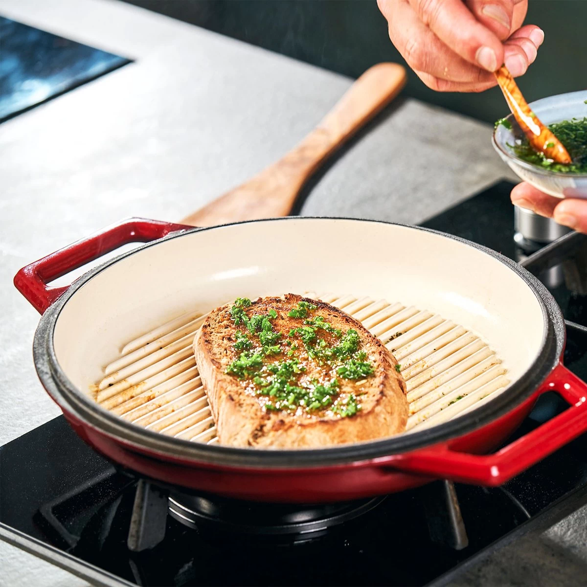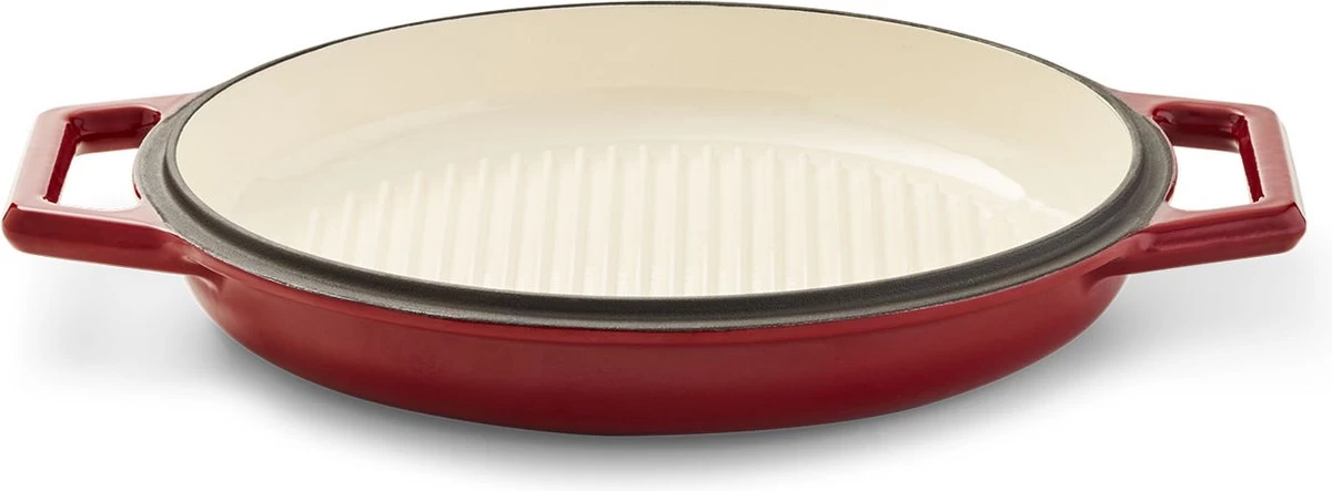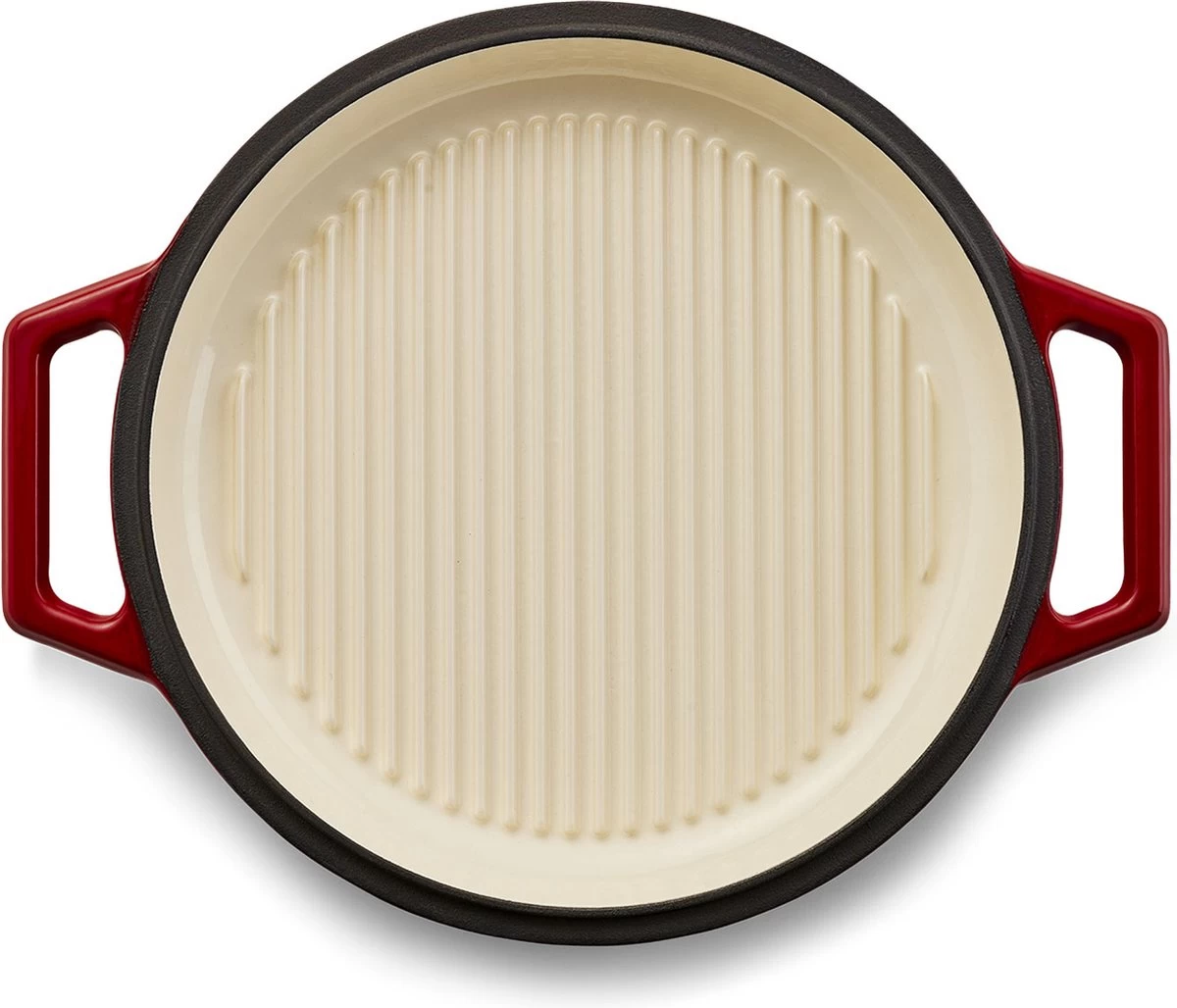 The Tasman Dutch Oven And Grill – Marmite – Fonte Recyclée – Avec Couvercle Grill – Ø29 Cm – Rouge