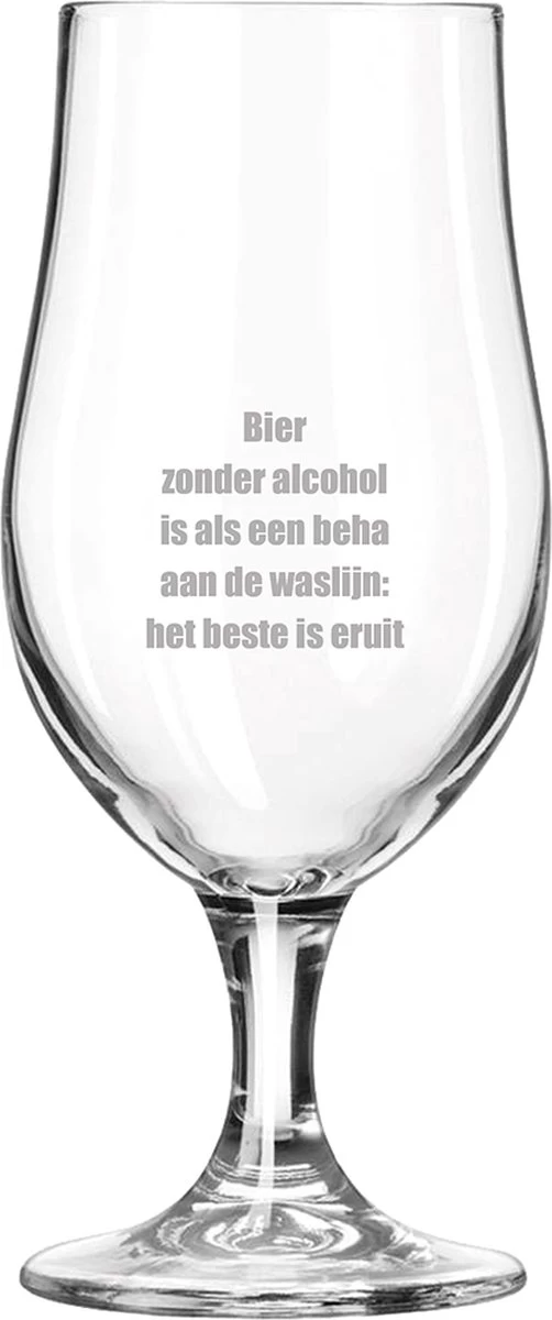 Verre à bière sur pied avec la gravure La Bières sans alcool est comme un soutien-gorge sur la corde à linge : le meilleur est sorti. Avez-vous votre propre idée? veuillez nous contacter Attention ! Ce produit est gravé. La couleur de l’image peut différer de la gravure sur le produit.