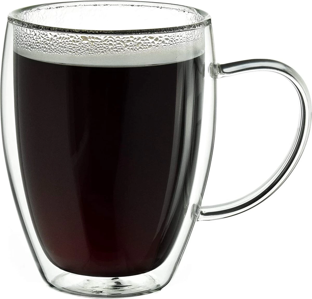 Verre à Thé Creano , Verre à Café, Verre à Latte, Double Paroi, Verre Thermique, Avec Poignée, Grand, En Verre Borosilicaté, 6 X 400 Ml