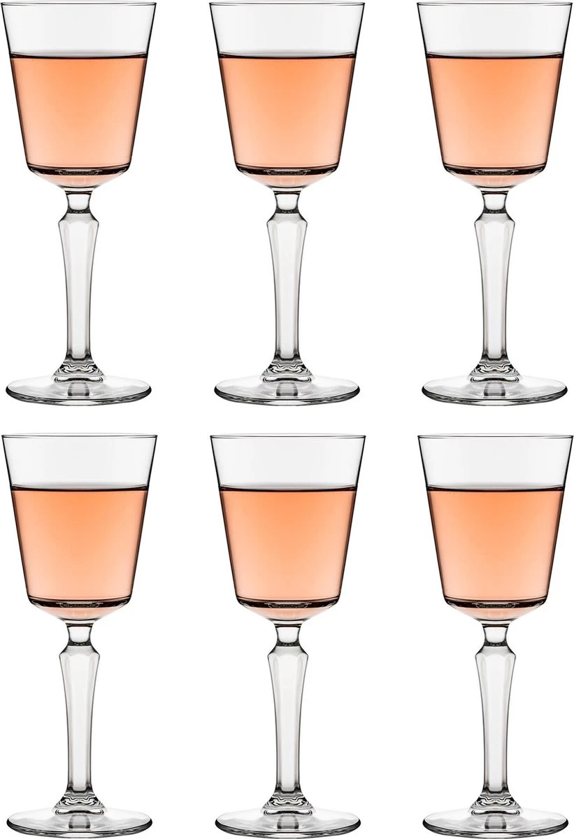 Libbey fournit les verres à vin dans un ensemble de 6 verres identiques. Les verres ont une hauteur de 19,4 cm et un diamètre de 7,8 cm. Ce verre a une capacité de 26 cl, ou une valeur de contenu de 8,5 onces (oz). Les verres conviennent à différents types de vins, mais les cocktails fonctionnent également bien. Mais les jus de fruits sont également délicieux dans ce verre. Les verres sont faciles à nettoyer après utilisation. Mettez-les au lave-vaisselle et après le programme, ils ont à nieuw l’ air neufs .
