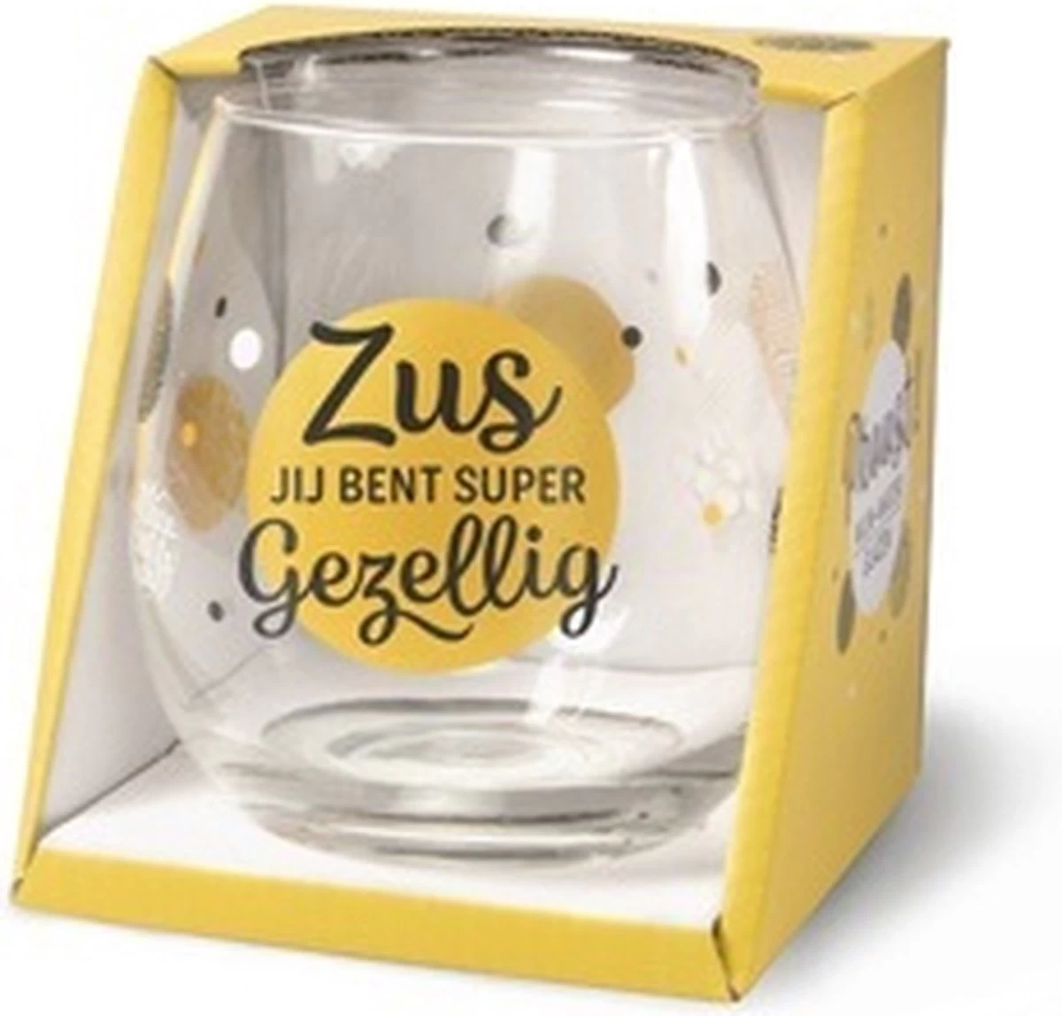 Ce verre à vin chic est rempli de chocolats italiens emballés, enveloppé dans une feuille transparente et fini avec un ruban coloré. Le texte intégral sur le verre se lit comme suit : « Sœur, vous êtes super confortable ». Un cadeau tout fait, aussi disponible vide ou rempli d’un mélange de caramel. Recherchez des cadeaux de bonbons amusants et savoureux sur Snoepkado.com.