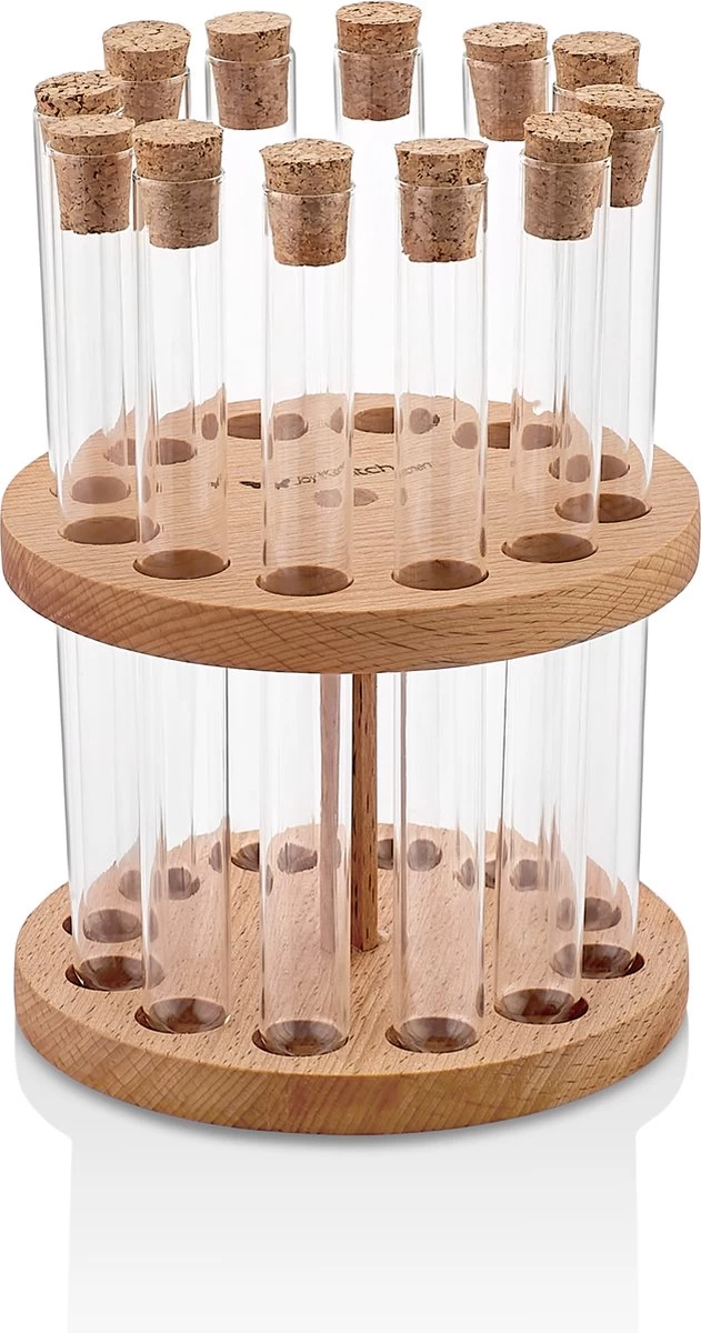 Conception élégante : Support décoratif en bois avec éprouvettes en verre et bouchon en liège amovible. Très pratique pour servir différentes boissons. Et aussi facile à nettoyer avec de l’eau et du savon !