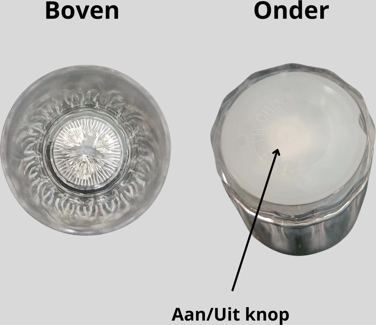 Chaque verre est équipé d’un éclairage LED dans les couleurs rouge, bleu et vert (piles comprises).