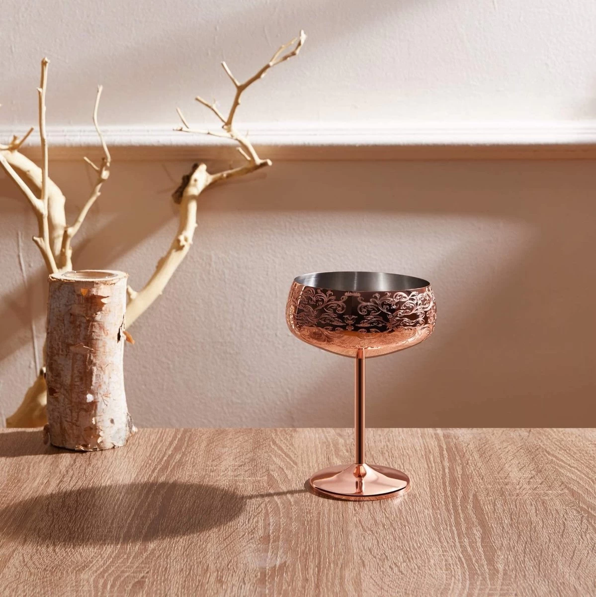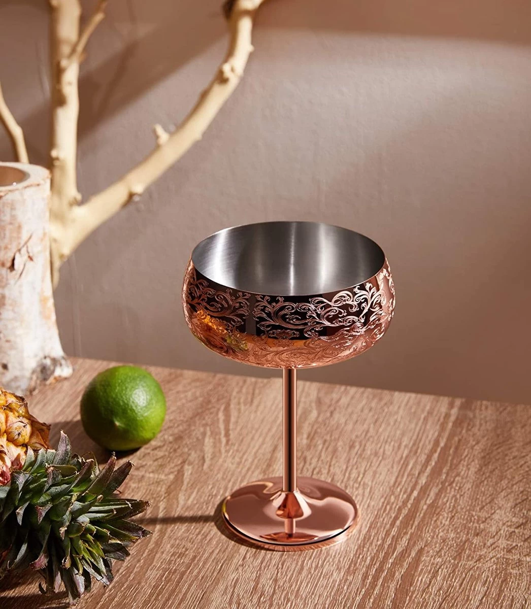 - L’élégance des verres à vin et l’acier inoxydable de haute qualité scintillent simplement avec une grâce parfaite et ajoutent de la royauté à votre cuisine. Il a les gravures délicates classiques de l’antiquité. Only une coupe comme celle-ci peut correspondre à la noblesse et à la stature.